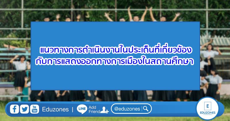 EZ Webmaster December 2, 2020 EZ Webmaster December 2, 2020 แนวทางการดำเนินงานในประเด็นที่เกี่ยวข้องกับการแสดงออกทางการเมืองในสถานศึกษา สรุปผลการพิจารณาและจัดทําแนวทางการดําเนินงานในประเด็นที่เกี่ยวข้องกับการแสดงออกทางการเมือง ในสถานศึกษา การป้องกันและช่วยเหลือนักเรียน นักศึกษาที่ได้รับผลกระทบจากการแสดงออกทาง การเมืองในสถานศึกษา ให้มีผลสัมฤทธิ์ในทางปฏิบัติ ของคณะทํางานด้านที่ 3 ด้านการแสดงออกทาง การเมืองในสถานศึกษา หมวดที่ 1 แนวทางการจัดทําข้อเสนอแนะเชิงนโยบายในประเด็นที่เกี่ยวข้องกับการแสดงออกทางการเมือง ในสถานศึกษา เจตนารมณ์ในหมวดที่ 1 มีวัตถุประสงค์เพื่อให้เป็นแนวทางในการปฏิบัติของผู้เกี่ยวข้องใน สถานศึกษา 1. ให้สถานศึกษารับรองสิทธิเสรีภาพในการแสดงออกทางการเมืองบนพื้นฐานประชาธิปไตย 2. ให้สถานศึกษาเป็นพื้นที่ปลอดภัยในการมีส่วนร่วมและแสดงออกทางการเมือง สําหรับสมาชิก ของสถานศึกษา 3. ให้สภานักเรียนหรือตัวแทนนักเรียนนักศึกษา หรือนักเรียน นักศึกษา หรือเทียบเท่า มีหน้าที่ใน การกําหนดข้อตกลงในการแสดงออกทางการเมืองร่วมกับสถานศึกษา และคณะกรรมการ สถานศึกษา 4. ให้สถานศึกษากําหนดขั้นตอนในการสร้างพื้นที่และเอื้ออํานวยของการพูดคุยตามวิถี ประชาธิปไตย ด้วยวิธีการต่างๆ เช่น สุนทรียะสนทนา การถกแถลง การปรึกษาหารือ การรับฟังสาธารณะ การระดมความคิดเห็น การแสดงออกเชิงสัญลักษณ์ ฯลฯ ในสถานศึกษาเพื่อการ แสดงออกทางการเมือง 5. ข้อกําหนดใดๆ หรือการกระทําใดๆ ต้องไม่ละเมิดสิทธิของผู้อื่นหรือละเมิดข้อตกลงร่วม ทั้งนี้ ข้อกําหนดใดๆต้องคํานึงถึงกฎหมายที่เกี่ยวข้องและอนุสัญญาว่าด้วยสิทธิเด็กและพ.ร.บ. คุ้มครองเด็ก และสิทธิมนุษยชนสากล และอนุสัญญาว่าด้วยสิทธิของพลเมืองและสิทธิการเมือง หมวดที่ 2 มาตรการหรือข้อเสนอแนะเชิงนโยบายในการป้องกันและช่วยเหลือนักเรียน นักศึกษาที่ได้รับ ผลกระทบจากการแสดงออกทางการเมืองในสถานศึกษา เจตนารมณ์ในหมวดที่ 2 มีวัตถุประสงค์เพื่อให้สถานศึกษามีแนวปฏิบัติในการป้องกัน และ ช่วยเหลือนักเรียน นักศึกษา ได้รับผลกระทบจากการแสดงออกทางการเมืองในสถานศึกษา โดยให้นักเรียน นักศึกษาเป็นสําคัญ 1. หน่วยงานและสถานศึกษาต้องแสดงเจตนารมณ์อย่างจริงจังในการป้องกัน แก้ปัญหา และช่วยเหลือนักเรียน นักศึกษา 2. หน่วยงานและสถานศึกษาจะต้องจัดให้มีแนวปฏิบัติในการคุ้มครองอย่างมีระบบ สอดคล้องกับ มาตรฐานสิทธิมนุษยชน ในการป้องกัน ผลกระทบจากการแสดงออกทางการเมืองใน สถานศึกษาของนักเรียน นักศึกษา 3. หน่วยงานและสถานศึกษาจะต้อ