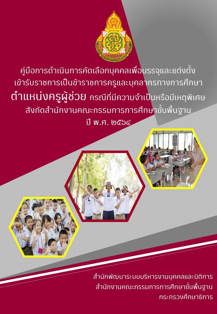 EZ Webmaster December 23, 2020 EZ Webmaster December 23, 2020 ดาวน์โหลดเลย…คู่มือการสอบคัดเลือก “ครูผู้ช่วย” กรณีพิเศษ สังกัด สพฐ. ปี 2564 ตามที่ ก.ค.ศ. ได้กำหนดหลักเกณฑ์และวิธีคัดเลือกบุคคลเพื่อบรรจุและแต่งตั้งเข้ารับราชการเป็นข้าราชการครูและบุคลากรทางการศึกษา ตำแหน่งครูผู้ช่วย กรณีที่มีความจำเป็นหรือมีเหตุพิเศษนั้น เพื่อให้การดำเนินการคัดเลือกบุคคลเพื่อบรรจุและแต่งตั้งเป็นข้าราชการครูและบุคลากรการศึกษา ตำแหน่งครูผู้ช่วย กรณีพิเศษที่มีความจำเป็นหรือมีเหตุพิเศษสังกัดคณะกรรมการการศึกษาขั้นพื้นฐาน ปี พ.ศ. 2564 เป็นไปด้วยความเรียบร้อยนั้น ทางสำนักงานคณะกรรมการการศึกษาขั้นพื้นฐาน (สพฐ.) จึงได้จัดทำ “คู่มือการดำเนินการคัดเลือกบุคคลเพื่อบรรจุและแต่งตั้งเข้ารับราชการเป็นข้าราชการครูและบุคลากรทางการศึกษา ตำแหน่งครูผู้ช่วยกรณี ที่มีความจำเป็นหรือมีเหตุพิเศษสังกัดสำนักงานคณะกรรมการการศึกษาขั้นพื้นฐาน ปี พศ. 2564” เล่มนี้ขึ้น โดยหวังเป็นอย่างยิ่งว่าคู่มือเล่มนี้จะเป็นประโยชน์ต่อการปฏิบัติงานตามหน้าที่ของหน่วยงานและบุคคลที่เกี่ยวข้องได้อย่างมีประสิทธิภาพ สำหรับเนื้อหาประกอบภายในคู่มือเล่มนี้ ประกอบไปด้วย ขั้นตอนและวิธีการดำเนินการคัดเลือกบุคคลเพื่อบรรจุและแต่งตั้งเข้ารับราชการเป็นข้าราชการครูและบุคลากรทางการศึกษาตำแหน่งครูผู้ช่วย หลักเกณฑ์และวิธีการคัดเลือก รวมไปถึงเอกสารหลักฐานต่างๆ ที่เกี่ยวข้องกับการคัดเลือก เป็นต้น สำหรับคนที่กำลังจะสอบในตำแหน่งครูผู้ช่วยกรณีพิเศษ สังกัด สพฐ. ปี 2564 รวมถึงผู้ที่สนใจอยากศึกษารายละเอียดเพิ่มเติม สามารถดาวน์โหลดไฟล์ไปศึกษาเพิ่มเติม ได้ที่ >>> คลิก ขอบคุณข้อมูลจาก -สำนักงานคณะกรรมการการศึกษาขั้นพื้นฐาน