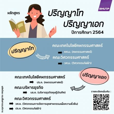 EZ Webmaster January 26, 2021 ราชมงคลพระนคร เปิดกว่า 50 ที่ ศึกษาต่อบัณฑิตศึกษา EZ Webmaster January 26, 2021 ผศ.สหรัตน์ วงษ์ศรีษะ รักษาราชการแทน อธิการบดี มหาวิทยาลัยเทคโนโลยีราชมงคลพระนคร เปิดเผยว่า มหาวิทยาลัยฯ เปิดรับสมัครนักศึกษาเข้าศึกษาต่อระดับปริญญาโทและปริญญาเอก ประจำปีการศึกษา 2564 จำนวน 55 คน โดยเปิดรับหลักสูตรมหาบัณฑิต คณะเทคโนโลยีคหกรรมศาสตร์ สาขาวิชาออกแบบแฟชั่นผ้าและสิ่งทอ สาขาวิชาอาหารและโภชนาการ สาขาวิชาธุรกิจอาหาร สาขาการบริหารธุรกิจคหกรรมศาสตร์ คณะวิศวกรรมศาสตร์ สาขาวิชาวิศวกรรมไฟฟ้า นอกจากนี้ในระดับปริญาเอก ยังเปิดรับหลักสูตรปรัชญาดุษฎีบัณฑิตคหกรรมศาสตร์ บริหารธุรกิจดุษฎีบัณฑิต วิศวกรรมศาสตร์ดุษฎีบัณฑิต (วิศวกรรมการจัดการอุตสาหกรรมเพื่อความยั่งยืน) และปรัชญาดุษฎีบัณฑิต (วิศวกรรมไฟฟ้า) “มหาวิทยาลัยเทคโนโลยีราชมงคลพระนคร จัดการเรียนการสอนโดยมีอาจารย์มากประสบการณ์ในสาขาวิชาต่าง ๆ… Continue Reading