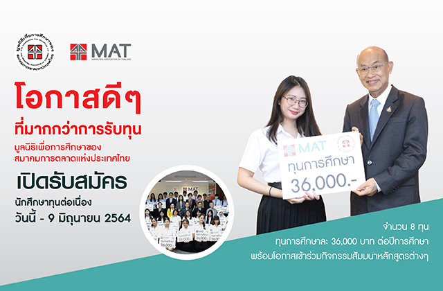 tui sakrapee January 26, 2021 มูลนิธิเพื่อการศึกษาของสมาคมการตลาดฯ เปิดให้ทุนหนุนนักศึกษาเรียนจนจบ4ปี tui sakrapee January 26, 2021 มูลนิธิเพื่อการศึกษาของสมาคมการตลาดแห่งประเทศไทย ตระหนักถึงความสำคัญด้านการศึกษา พร้อมส่งเสริมนักศึกษาสาขาวิชาที่เกี่ยวข้องกับการตลาดและธุรกิจ ที่มีความมุ่งมั่น ตั้งใจ โดยพร้อมให้การสนับสนุนทุนการศึกษาต่อเนื่อง เพื่อให้นิสิตนักศึกษาที่ได้รับการคัดเลือก ได้จบการศึกษาเป็นบัณฑิตคุณภาพ เป็นอนาคตของแวดวงนักการตลาดไทย ทางมูลนิธิฯ จึงเปิดรับสมัคร นักศึกษาทุนต่อเนื่อง ประจำปี 2564 จำนวน 8 ทุน โดยจะให้การสนับสนุนการศึกษา จำนวน 36,000 บาท ต่อปี ต่อเนื่องจนจบการศึกษา (ภายใน 4 ปี) โดยไม่มีข้อผูกมัดในการใช้ทุนใดๆ พร้อมโอกาสให้ผู้รับทุนสามารถรับโอกาสดีๆ เข้าร่วมกิจกรรมสัมมนาหลักสูตรต่างๆ กับสมาคมการตลาดแห่งประเทศไทย โดยไม่มีค่าใช้จ่ายตลอดโครงการ รับสมัครตั้งแต่วันนี้… Continue Reading