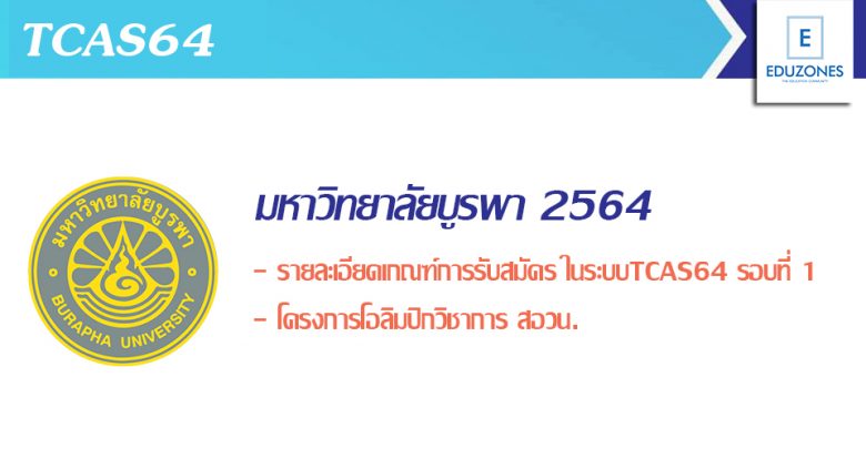 EZ Webmaster January 17, 2021 #TCAS64 มหาวิทยาลัยบูรพา เปิดรับสมัครนศ.ป.ตรี รอบที่ 1 โอลิมปิกวิชาการ สอวน. ตั้งแต่วันที่ 5-19 ม.ค.นี้ EZ Webmaster January 17, 2021 มหาวิทยาลัยบูรพา เปิดรับสมัครคัดเลือกบุคคลเพื่อเข้าศึกษาต่อในระดับปริญญาตรี รอบที่ 1 โครงการโอลิมปิกวิชาการ สอวน. ประจำปีการศึกษา 2564 โดยจะเปิดรับสมัครตั้งแต่วันที่ 5-19 มกราคม 2564 จำนวนรับ -296 ที่นั่ง คณะ/สาขาที่เปิดรับสมัคร -คณะมนุษยศาสตร์และสังคมศาสตร์ -คณะภูมิสารสนเทศศาสตร์ -คณะวิทยาศาสตร์ -คณะวิศวกรรมศาสตร์ -คณะสาธารณสุขศาสตร์ -คณะศึกษาศาสตร์ -คณะวิทยาศาสตร์และศิลปศาสตร์ วิทยาเขตจันทบุรี -คณะอัญมณี วิทยาเขตจันทบุรี -คณะวิทยาศาสตร์และสังคมศาสตร์ วิทยาเขตสระแก้ว -คณะเทคโนโลยีการเกษตร วิทยาเขตสระแก้ว… Continue Reading