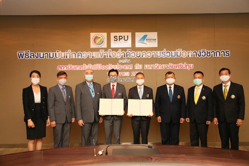 EZ Webmaster March 17, 2021 EZ Webmaster March 17, 2021 ม.ศรีปทุม เซ็น MOU สทป. ส่งเสริมพัฒนาด้านวิชาการและงานวิจัย เมื่อวันที่ 12 มีนาคม 2564 ที่ผ่านมา ผศ.ดร.วิรัช เลิศไพฑูรย์พันธ์ รองอธิการบดีมหาวิทยาลัยศรีปทุม พร้อมด้วย พล.อ.อ.ดร.ปรีชา ประดับมุข ผู้อำนวยการสถาบันเทคโนโลยีป้องกันประเทศ (สทป.) ร่วมลงนามบันทึกข้อตกลงความร่วมมือทางวิชาการ (MOU) ร่วมกันระหว่าง วิทยาลัยการบินและคมนาคม มหาวิทยาลัยศรีปทุม กับ สถาบันเทคโนโลยีป้องกันประเทศ กระทรวงกลาโหม โดยมี พล.อ.อ.พิธพร กลิ่นเฟื่อง คณบดีวิทยาลัยการบินและคมนาคม มหาวิทยาลัยศรีปทุม พร้อมด้วยพล.ต.ดร.ชรัติ อุ่มสัมฤทธิ์ รองผู้อำนวยการสถาบันเทคโนโลยีป้องกันประเทศ ร่วมเป็นสักขีพยานการลงนามฯ ในครั้งนี้ เพื่อร่วมมือกันในการส่งเสริมกิจกรรมทางด้านวิชาการ และการพัฒนางานวิจัย ตลอดจนส่งเสริมทักษะในการปฎิบัติงานจริงแก่นักศึกษา ณ ห้องบอร์ดรูม ชั้น14 อาคาร 11 มหาวิทยาลัยศรีปทุม กทม.(บางเขน)