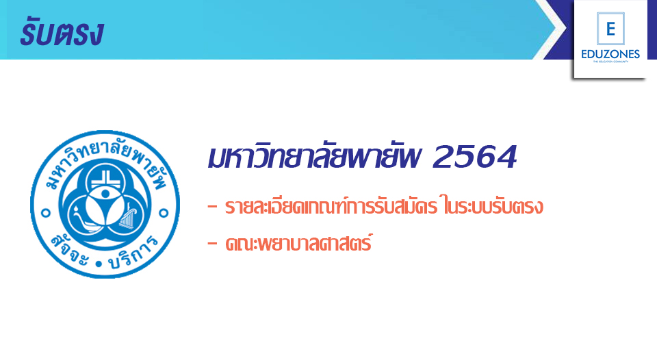 EZ Webmaster March 19, 2021 EZ Webmaster March 19, 2021 #รับตรง64 พยาบาลศาสตร์ ม.พายัพ เปิดรับสมัครนศ.ป.2 (รับตรงครั้งที่ 2) ตั้งแต่วันที่ 15 ก.พ. 64 – 26 มี.ค 64 สาขาวิชาพยาบาลศาสตร์ มหาวิทยาลัยพายัพ เปิดรับสมัครคัดเลือกบุคคลเพื่อเข้าศึกษาต่อนระดับปริญญาตรี โดยจะเปิดรับสมัครตั้งแต่วันที่ 15 กุมภาพันธ์ 26 มีนาคม วลา19.00 น. กำหนดการ -เปิดรับสมัครตั้งแต่วันที่ 15 กุมภาพันธ์ 26 มีนาคม วลา19.00 น. คุณสมบัติของผู้สมัคร -เป็นผู้ที่กำลังศึกษาอยู่หรือ สำเร็จการศึกษาชั้นมัธยมศึกษา 6 จากแผนการเรียนวิทย์ – คณิต (โดยไม่รับเทียบเท่า) -เป็นผู้ที่มีเกรดเฉลี่ยสะสม (GPAX 5) เทอม 2.50 ขึ้นไป -เป็นหญิง หรือชาย สถานภาพโสด อายุไม่เกิน 30 ปี -หญิง มีส่วนสูง ไม่น้อยกว่า 150 เซนติเมตร และน้ำหนักตัว ไม่น้อยกว่า 40 กิโลกรัม และ ชาย มีส่วนสูง ไม่น้อยกว่า 160 เซนติเมตร และน้ำหนักตัว ไม่น้อยกว่า 50 กิโลกรัม ช่องทางการสมัคร -สมัครด้วยตนเอง ศูนย์รับนักศึกษาและบริหารหลักสูตรระยะสั้น เวลา 08.30 – 16.00 น. (ยกเว้นวันหยุดราชการและวันหยุดนักขัตฤกษ์) -สมัครทางไปรษณีย์ โดยส่งเอกสารประกอบการสมัครมาที่ ศูนย์รับนักศึกษาและบริหารหลักสูตรระยะสั้น มหาวิทยาลัยพายัพ เขตแม่คาว อ.เมือง จ.เชียงใหม่ 50000 (วงเล็บมุมซอง “สมัครนักศึกษาใหม่”) -หลักเกณฑ์การพิจารณารับเข้า -เกรดเฉลี่ยมสะสม สำหรับผู้ที่สนใจสมัครเข้าศึกษาสามารถเข้าไปศึกษารายละเอียดเพิ่มเติม ได้ที่ >>> คลิก ขอบคุณข้อมูลจาก -เว็บไซต์มหาวิทยาลัยพายัพ