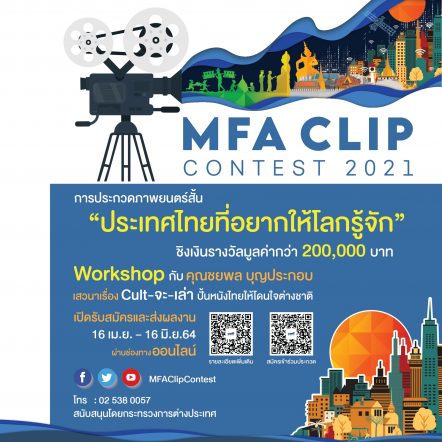 EZ Webmaster April 7, 2021 ประกวดหนังสั้น “ประเทศไทยที่อยากให้โลกรู้จัก” ชิงรางวัล 200,000 บาท EZ Webmaster April 7, 2021 ถึงเวลาปล่อยของ โชว์พลังไอเดียสุดสร้างสรรค์ กับโครงการประกวดภาพยนตร์สั้น ภายใต้หัวข้อ “ประเทศไทยที่อยากให้โลกรู้จัก” ซึ่งจัดขึ้นโดย กรมสารนิเทศ กระทรวงการต่างประเทศ เชิญชวนคนรุ่นใหม่ สร้างผลงานภาพยนตร์สั้น นำเสนอเรื่องราวของประเทศไทยที่อยากให้ทั่วโลกรู้จักผ่านแนวคิดและมุมมองของตนเอง ชิงรางวัลมูลค่ารวมกว่า 200,000 บาท เปิดรับสมัครและส่งผลงานได้ตั้งแต่วันที่ 16 เมษายน – 16 มิถุนายน 2564 ประกาศผลวันที่ 6 สิงหาคม 2564 สำหรับคุณสมบัติผู้เข้าร่วมกิจกรรม ต้องมีอายุระหว่าง 13-28 ปี สมัครได้ทั้งแบบเดี่ยว และแบบทีม โดยจะต้องสร้างสรรค์ภาพยนตร์สั้นความยาว 3-5 นาที สัดส่วนของภาพขนาด 16:9 ความละเอียดระดับ Full HD โดยคณะกรรมการจะพิจารณาจาก ความคิดสร้างสรรค์ เนื้อหาภาพรวม เทคนิคการถ่ายทำ การใช้ ภาษา และคุณภาพในการผลิต ทั้งนี้ผู้เข้าร่วมกิจกรรมจะได้ร่วมการเสวนา ภายใต้หัวข้อ “Cult-จะ-เล่า: ปั้นหนังไทยให้โดนใจต่างชาติ” จาก คุณชลิดา เอื้อบำรุงจิต ผู้อำนวยการหอภาพยนตร์ไทย คุณภาณุ อารี ผู้อำนวยการฝ่ายจัดซื้อภาพยนตร์ต่างประเทศ สหมงคลฟิล์ม และคุณชยนพ… Continue Reading