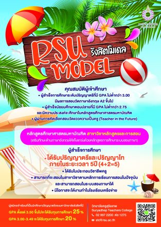 EZ Webmaster April 7, 2021 ม.รังสิตเปิดหลักสูตร “รังสิตโมเดล” ผลิตครูด้านศึกษาศาสตรมหาบัณฑิต EZ Webmaster April 7, 2021 วิทยาลัยครูสุริยเทพ มหาวิทยาลัยรังสิต เปิดหลักสูตรศึกษาศาสตรมหาบัณฑิต สาขาหลักสูตรและการสอน และ สาขาการศึกษาระบบสองภาษาและการสอนภาษาอังกฤษของวิทยาลัยครูสุริยเทพ โดยใช้ระยะเวลาในการศึกษาเป็นเวลา 5 ปี ถึง 5 ปีครึ่ง เมื่อสำเร็จการศึกษาจะได้รับปริญญาตรีและปริญญาโท ได้รับใบประกอบวิชาชีพครู สามารถสอนในสาขาวิชาตามหลักการเรียนการสอนในปัจจุบันและสามารสอนในระบบสองภาษาได้ ทั้งนี้ ผู้สมัครจะต้องมีคุณสมบัติ ดังนี้ เป็นผู้สำเร็จการศึกษาระดับปริญญาตรีที่มีGPAไม่ต่ำกว่า 3.00 มีผลการสอบวัดภาษาอังกฤษ A2 ขึ้นไป เป็นผู้สำเร็จมัธยมศึกษาตอนปลายที่มีGPAไม่ต่ำกว่า 2.75 และมีความประสงค์จะศึกษาในหลักสูตรศึกษาศาสตรมหาบัณฑิต เป็นผู้ผ่านการคัดเลือกจากข้อ 1.1 หรือ 1.2 จะต้องสอบวัดแววความเป็นครู (Teacher in… Continue Reading