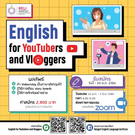 EZ Webmaster April 28, 2021 สถาบันภาษา ม.รังสิต จัดอบรม Communicative English for YouTubers and Vloggers EZ Webmaster April 28, 2021 สถาบันภาษาอังกฤษ มหาวิทยาลัยรังสิต จัดอบรมหลักสูตร Communicative English for YouTubers and Vloggers สำหรับนักศึกษามหาวิทยาลัยรังสิตและบุคคลภายนอก ตั้งแต่วันที่ 24 พฤษภาคม – 2 มิถุนายน 2564 เวลา 09.00 – 12.00 น. (จำนวน 20 ชั่วโมง) ผ่าน Video Conference สำหรับผู้ทีสนใจสามารถลงทะเบียนโดยมีค่าสมัครเข้าร่วมการอบรมจำนวน 2,900 บาท หรือติดต่อสอบถามรายละเอียดได้ที่ โทร 02-9972200-30 ต่อ 4045 Continue Reading
