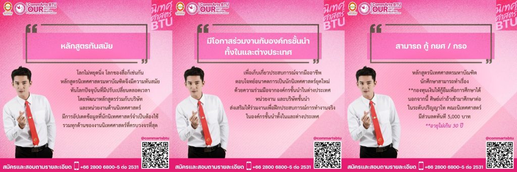ผู้สนใจศึกษาต่อในระดับปริญญาโท หลักสูตรนิเทศศาสตรมหาบัณฑิต สาขาวิชานิเทศศาสตร์ มหาวิทยาลัยกรุงเทพธนบุรี สอบถามรายละเอียดเพิ่มเติมได้ที่