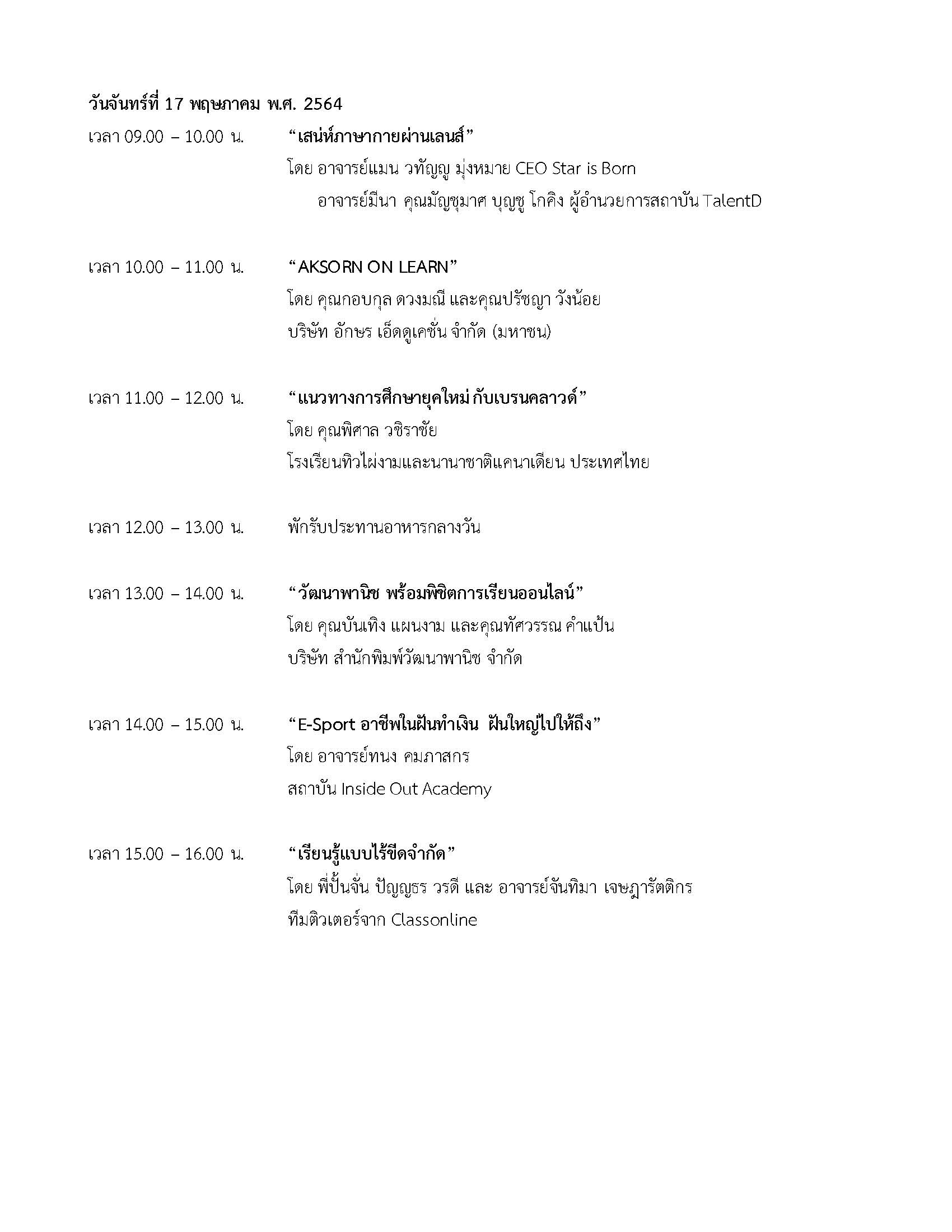 มทร.ธัญบุรี พร้อมปั้นบัณฑิตสู่ยุค NEXT GEN การันตีความสำเร็จด้วยคลื่นมหาชน tui sakrapeeDecember 4, 2025 มหาวิทยาลัยเทคโนโลยีราชมงคลธัญบุรี (มทร.ธัญบุรี) สร้างปรากฏการณ์ครั้งสำคัญในแวดวงการศึกษาไทยผ่านงาน ‘RMUTT NEXT GEN: Open House 2026 : เปิดประตูสู่ราชมงคลธัญบุรี 69’ เมื่อวันที่ 27 และ 28 พฤศจิกายน 2568… ม.กรุงเทพ จัดงาน The Shape of Tomorrow: Bangkok Art & Architecture @Dib Bangkok tui sakrapeeDecember 4, 2025 คณะสถาปัตยกรรมศาสตร์ มหาวิทยาลัยกรุงเทพ จัดงาน “The Shape of Tomorrow: Bangkok Art & Architecture” เปิดพื้นที่แลกเปลี่ยนองค์ความรู้และประสบการณ์ระหว่างนักวิชาการ ผู้เชี่ยวชาญในวงการสถาปัตยกรรมที่มุ่งเน้นแนวคิดการออกแบบที่ตอบโจทย์ความยั่งยืน (Sustainability) และการปรับใช้พื้นที่อาคารให้เกิดคุณค่าใหม่ (Adaptive Reuse) โดยปรับเปลี่ยนพื้นที่เดิมให้กลายเป็นพื้นที่สร้างสรรค์อย่าง… มหาวิทยาลัยราชภัฏสวนสุนันทา จับมือ “เอ็ม พาวเวอร์ คอร์ปอเรชั่น” ลงนาม MOU ขับเคลื่อนระบบจัดการวัสดุรีไซเคิล สู่มหาวิทยาลัยสีเขียวอย่างยั่งยืน tui sakrapeeDecember 4, 2025 เมื่อวันพฤหัสบดีที่ 4 ธันวาคม 2568 มหาวิทยาลัยราชภัฏสวนสุนันทา จัดพิธีลงนามบันทึกความเข้าใจ (MOU) ร่วมกับบริษัท เอ็ม พาวเวอร์ คอร์ปอเรชั่น จำกัด ณ ห้องประชุมสภามหาวิทยาลัย เพื่อขับเคลื่อนการพัฒนาระบบการจัดการวัสดุรีไซเคิลภายในมหาวิทยาลัยอย่างเป็นรูปธรรมและยั่งยืน พิธีลงนามในครั้งนี้มีวัตถุประสงค์เพื่อพัฒนากลไกการจัดการวัสดุรีไซเคิลให้มีประสิทธิภาพยิ่งขึ้น ส่งเสริมการคัดแยกขยะอย่างถูกต้อง เพิ่มคุณค่าและสร้างรายได้จากวัสดุที่สามารถนำกลับมาใช้ใหม่… สุดเจ๋ง! สถานศึกษาอาชีวะ รับรางวัลโครงการชีววิถีฯ ระดับประเทศ ประจำปี 2568 สานต่อปณิธานหลักปรัชญาเศรษฐกิจพอเพียงของพ่อหลวงรัชกาลที่ 9 EZ WebmasterDecember 3, 2025 สุดเจ๋ง! สถานศึกษาอาชีวะ รับรางวัลโครงการชีววิถีฯ ระดับประเทศ ประจำปี 2568 สานต่อปณิธานหลักปรัชญาเศรษฐกิจพอเพียงของพ่อหลวงรัชกาลที่ 9 วันนี้ (1 ธ.ค. 68) นายยศพล เวณุโกเศศ เลขาธิการคณะกรรมการการอาชีวศึกษา มอบหมายให้ นายสง่า แต่เชื้อสาย… Search for: Search EZ Webmaster May 11, 2021 EZ Webmaster May 11, 2021 เช็กกำหนดการกิจกรรม ”การเรียนรู้เพื่อการสอน สอนเพื่อการเรียนรู้ ” 12-25 พฤษภาคม 2564 จาก สพฐ. สํานักงานคณะกรรมการการศึกษาขั้นพื้นฐาน (สพฐ.) ร่วมกับสํานักงานคณะกรรมการส่งเสริม การศึกษาเอกชน และเครือข่ายความร่วมมือเพื่อส่งเสริมการจัดการศึกษาโรงเรียนเอกชน กําหนดจัดกิจกรรม “เรียนรู้เพื่อการสอน สอนเพื่อการเรียนรู้” ระหว่างวันที่ 12-25 พฤษภาคม 2564 เพื่อเป็นประโยชน์แก่ผู้บริหาร ครู นักเรียน และผู้ที่เกี่ยวข้อง ได้รับความรู้ที่เป็นประโยชน์ต่อการเรียนการสอน โดยสำหรับผู้ที่สนใจรับชมก