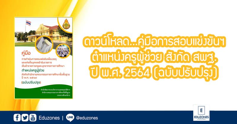 EZ Webmaster May 29, 2021 EZ Webmaster May 29, 2021 ดาวน์โหลด…คู่มือการสอบแข่งขันฯ ตำแหน่งครูผู้ช่วย สังกัด สพฐ. ปี พ.ศ. 2564 (ฉบับปรับปรุง) เพื่อให้การดำเนินการสอบแข่งขันเพื่อบรรจุแต่งตั้งบุคคลเข้ารับราชการเป็นข้าราชการครูและบุคลากรทางการศึกษา ตำแหน่งครูผู้ช่วย สังกัดสำนักงานคณะกรรมการการศึกษาขั้นพื้นฐาน ปี พ.ศ. 2564 เป็นไปด้วยความเรียบร้อย มีประสิทธิภาพ ถูกต้องตามหลักเกณฑ์และวิธีการ ทางสำนักงานคณะกรรมการการศึกษาขั้นพื้นฐานจึงจัดทำคู่มือการดำเนินการสอบแข่งขัน เพื่อบรรจุแต่งตั้งบุคคลเข้ารับราชการเป็นข้าราชการครูและบุคลากรทางการศึกษา ตำแหน่งครูผู้ช่วย สังกัดสำนักงานคณะกรรมการการศึกษาขั้นพื้นฐาน ปี พ.ศ. 2564 (ฉบับปรับปรุง) เล่มนี้ขึ้น โดยคู่มือเล่มนี้จะประกอบด้วยกำหนดการ ขั้นตอนการดำเนินการ ข้อแนะนำ เอกสารประกอบการแข่งขัน หลักเกณฑ์และวิธีการสอบแข่งขัน รวมถึงระเบียบการและแนวปฏิบัติต่างๆ โดยผู้ที่สนใจสมัครสอบแข่งขันสามารถเข้าไปดาวน์โหลดคู่มือไปศึกษารายละเอียดเพิ่มเติม ได้ที่ >>> คลิก ขอบคุณข้อมูลจาก -สังกัดสำนักงานคณะกรรมการการศึกษาขั้นพื้นฐาน