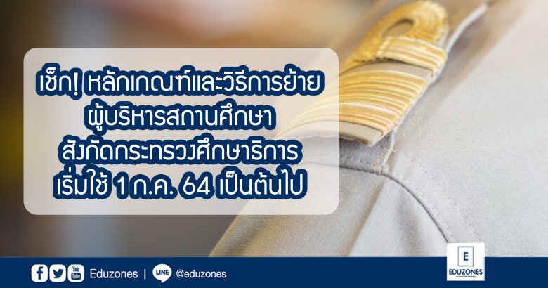EZ Webmaster May 14, 2021 เช็ก! หลักเกณฑ์และวิธีการย้ายผู้บริหารสถานศึกษา สังกัดกระทรวงศึกษาธิการ เริ่มใช้ 1 ก.ค. 64 เป็นต้นไป EZ Webmaster May 14, 2021 ล่าสุด เมื่อวันที่ 12 พฤษภาคม 2564 ที่ผ่านมา ทางสำนักงานปลัดกระทรวงศึกษาธิการ ได้ส่งหนังสือถึงปลัดกระทรวงศึกษาธิการ เลขาธิการ ศึกษาธิการจังหวัด และผู้อำนวยการสำนักงานเขตพื้นที่การศึกษา เรื่อง หลักเกณฑ์และวิธีการย้ายผู้บริหารสถานศึกษา สังกัดกระทรวงศึกษาธิการ โดย ก.ค.ศ. มีมติ พิจารณาแล้ว ดังนี้ 1.ยกเลิกหลักเกณฑ์และวิธีการย้ายผู้บริหารสถานศึกษา สังกัดกระทรวงศึกษาธิการ ตามหนังสือที่อ้างถึง 1 คำอธิบายหลักเกณฑ์และวิธีการย้ายผู้บริหารสถานศึกษา สังกัดกระทรวงศึกษาธิการ และการดำเนินการย้ายผู้บริหารสถานศึกษา สังกัดกระทรวงศึกษาธิการ ตามหนังสือที่อ้างถึง 2 และ 3 ตั้งแต่วันที่… Continue Reading