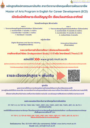 EZ Webmaster May 9, 2021 ปริญญาโท ภาษาอังกฤษเพื่อการพัฒนาอาชีพกัน เรียนเสาร์-อาทิตย์ EZ Webmaster May 9, 2021 ถึงเพื่อนๆ ญาติพี่น้อง คนรู้จักจากทุกสายงาน ที่อยากเรียนภาษาอังกฤษ หรือใช้ภาษาอังกฤษในที่ทำงาน มาสมัครเรียนปริญญาโท ภาษาอังกฤษเพื่อการพัฒนาอาชีพกัน เรียนเสาร์-อาทิตย์ มีให้เลือกทั้งแบบมี/ไม่มีวิทยานิพนธ์ สนใจสมัคร หรือเข้าไลน์มาคุยกันได้ *ปชส. M.A. ECD* https://line.me/R/ti/g/vyTO9i-Wn7 หรือสมัครที่นี่ www.grad.rmutt.ac.th Continue Reading