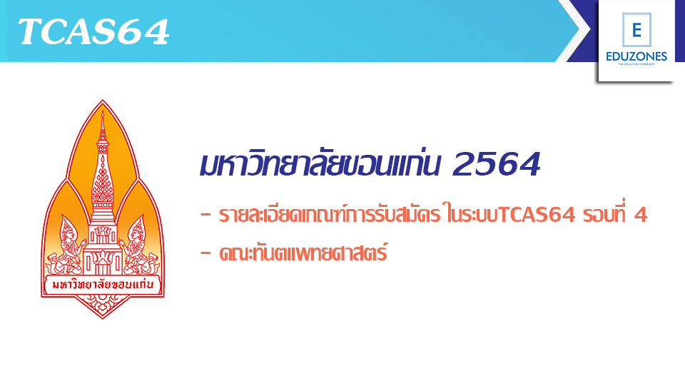 EZ Webmaster June 4, 2021 EZ Webmaster June 4, 2021 #TCAS64 คณะทันตแพทยศาสตร์ ม.ขอนแก่น เปิดรับสมัครนศ.ป.ตรี รอบที่ 4 (Direct Admission) ตั้งแต่วันที่ 3-7 มิ.ย. 64 คณะทันตแพทยศาสตร์ มหาวิทยาลัยขอนแก่น เปิดรับสมัครบุคคลเพื่อคัดเลือกเข้าเป็นนิสิตระดับปริญญาตรี ประจำปีการศึกษา 2564 TCAS รอบที่ 4 (Direct Admission) โดยจะเปิดรับสมัครระหว่างวันที่ 3 – 7 มิถุนายน 2564 จำนวนรับ -13 ที่นั่ง กำหนดการ -เปิดรับสมัครตั้งแต่วันที่ 3-7 มิถุนายน 2564 -ประกาศรายชื่อผู้มีสิทธิ์สอบสัมภาษณ์ วันที่ 11 มิถุนายน 2564 -สอบสัมภาษณ์และสอบปฏิบัติ วันที่ 13 มิถุนายน 2564 -ประกาศรายชื่อผู้มีสิทธิ์เข้าศึกษา วันที่ 14 มิถุนายน 2564 คุณสมบัติของผู้สมัคร -เป็นผู้ที่กำลังศึกษาหรือสำเร็จการศึกษาในระดับชั้นมัธยมศึกษาปีที่ 6 ในโรงเรียนที่ตั้งอยู่ในภาคตะวันออกเฉียงเหนือ หรือ ผู้สมัคร มีที่อยู่ตามทะเบียนบ้าน อยู่ในภาคตะวันออกเฉียงเหนือ ไม่น้อยกว่า 3 ปี ต่อเนื่องกันถึงปัจจุบัน -เป็นผู้ที่มีคะแนนเฉลี่ยสะสม (GPAX) ระดับมัธยมศึกษาตอนปลาย ตั้งแต่ 3.60 ขึ้นไป -เป็นผู้ที่มีมีผลคะแนนการสอบวัดความรู้ความสามารถทางภาษาอังกฤษ ดังนี้ ตั้งแต่ระดับช่วงคะแนนที่ 1 ขึ้นไประดับ 1)TOFEL ITP 2)TOEFL computer based 3)TOEFL IBT 4)IELTS 5)CU-TEP 6)KEPT ช่องทางการสมัคร -สมัครทางออนไลน์ผ่านทางเว็บไซต์ https://admissions.kku.ac.th/regis_app เอกสารประกอบการสมัคร -สำเนาผลการเรียนระดับชั้นมัธยมศึกษาตอนปลาย -สำเนาคะแนนผลสอบ 9 วิชาสามัญ -สำเนาบัตรประจำตัวประชาชน -สำเนาทะเบียนบ้าน -เอกสารการลาออกจากการเป็นนักศึกษา (กรณีเป็นนักศึกษาชั้นปีที่ 1) -ผลคะแนนการสอบวัดความรู้ความสามารถทางภาษาอังกฤษ หลักเกณฑ์การพิจารณารับเข้า -เกรดเฉลี่ยสะสม (GPAX) -ผลคะแนน 9 วิชาสามัญ -การสอบสัมภาษณ์ -ผลคะแนนการสอบวัดความรู้ความสามารถทางภาษาอังกฤษ สำหรับผู้ที่สนใจสมัครสามารถเข้าไปศึกษารายละเอียดเพิ่มเติม ได้ที่ >>> คลิก ขอบคุณข้อมูลจาก -เว็บไซต์มหาวิทยาลัยขอนแก่น