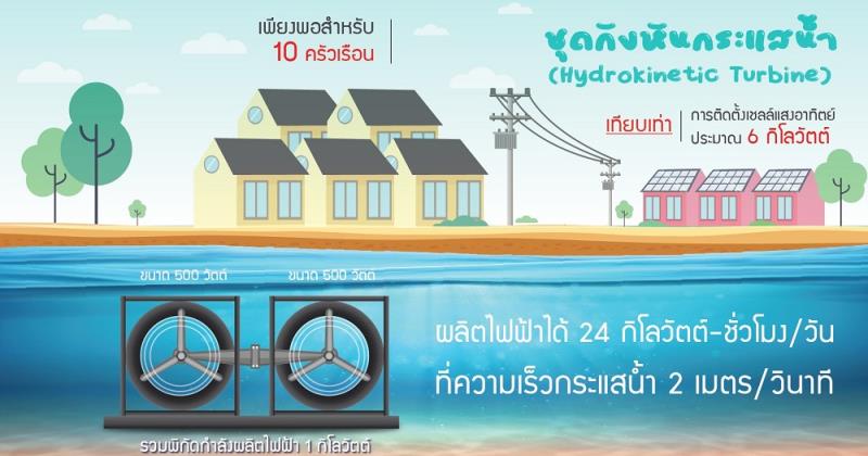 EZ Webmaster June 8, 2021 EZ Webmaster June 8, 2021 มจธ. ชนะเลิศเวที ASEAN Energy Awards 2020 ประเภทพลังงานหมุนเวียน ชุดกังหันกระแสน้ำผลิตไฟฟ้านวัตกรรมทั่วถึง (Inclusive Innovation of Hydrokinetic Turbine) พัฒนาโดย ผศ.ดร.อุสาห์ บุญบำรุง และคณะนักวิจัย มหาวิทยาลัยเทคโนโลยีพระจอมเกล้าธนบุรี (มจธ.) ได้รับรางวัลชนะเลิศ ASEAN Renewable Energy Projects Awards 2020 ด้านพลังงานทดแทน (Renewable Energy Awards) ประเภทพลังงานหมุนเวียน (Special Submission) จากเวที ASEAN Energy Awards 2020 โดยศูนย์พลังงานอาเซียน (ASEAN Centre for Energy: ACE) ชุดกังหันกระแสน้ำผลิตไฟฟ้า (Hydrokinetic turbine) ออกแบบให้มีพิกัดกำลังไฟฟ้าที่เพียงพอสำหรับการใช้งานของครอบครัวในชนบท ประสิทธิภาพสูงเทียบเท่ากับกังหันนำเข้าจากต่างประเทศ ขณะที่ราคาต่ำกว่า ซึ่งจะเป็นการเพิ่มความสามารถในการเข้าถึงเทคโนโลยีหรือนวัตกรรมทั่วถึง (Inclusive innovation) รองรับการใช้งานในหลากหลายภูมิประเทศ ครอบคลุมถึงการใช้งานในลำธารและในทะเล ผศ. ดร.อุสาห์ บุญบำรุง หัวหน้าโครงการ สถาบันพัฒนาและฝึกอบรมโรงงานต้นแบบ มจธ. กล่าวว่า ขั้นตอนการวิจัยเริ่มต้นจากการใช้อัลกอริทึมทางคณิตศาสตร์ในการหาขนาดและรูปทรงของใบพัดที่เหมาะสมที่สุด โดยอาศัยหลักการถ่ายโอนพลังงานและแผนภูมิความเร็ว จากนั้นใช้วิธีการคำนวณพลศาสตร์ของไหลช่วยในการจำลอง วิเคราะห์สนามความเร็ว การกระจายความดัน และประสิทธิภาพเชิงกลศาสตร์การไหลของชุดกังหันน้ำ ก่อนสร้างขึ้นรูปด้วยโดยกระบวนการพิมพ์ 3 มิติ และการหล่อขึ้นรูปด้วยอะลูมิเนียม ติดตั้งทดสอบในห้องปฏิบัติการ และติดติดตั้งทดสอบภาคสนามที่บ้านโป่งลึกบางกลอย จังหวัดเพชรบุรี และอุทยานแห่งชาติตะรุเตา จังหวัดสตูล ผลการติดตั้งทดสอบชุดกังหันกระแสน้ำขนาดเล็กนวัตกรรมทั่วถึงสำหรับการผลิตไฟฟ้าในชนบทขนาด 500 วัตต์ จำนวน 2 ชุด รวมพิกัดกำลังผลิตไฟฟ้า 1 กิโลวัตต์ ที่ความเร็วกระแสน้ำ 2 เมตร/วินาที ต้นทุนการผลิตอยู่ที่ 30,000 บาท/ชุด หรือคิดเป็น 60 บาท/วัตต์ พบว่าอัตราพลังงานไฟฟ้าที่ผลิตได้จากชุดกังหันกระแสน้ำอยู่ที่ 3.52 บาทต่อกิโลวัตต์-ชั่วโมง ซึ่งช่วยยกระดับความเป็นอยู่ของชุมชนที่ห่างไกลให้มีไฟฟ้าเพียงพอต่อการทำงานและใช้ชีวิตประจำวัน และเข้าใจประโยชน์การใช้พลังงานทดแทน ซึ่งสามารถลดการใช้น้ำมันเชื้อเพลิงสำหรับผลิตไฟฟ้าประมาณ 2,628 ลิตร/ปี ลดการปล่อยก๊าซคาร์บอนไดออกไซด์จากเครื่องปั่นไฟที่ใช้น้ำมันดีเซล 7.212 ตัน/ปี หนึ่งในก๊าซเรือนกระจกสาเหตุหลักที่ก่อให้เกิดภาวะโลกร้อน ผลงานวิจัยนี้เกี่ยวข้องกับเป้าหมายการพัฒนาที่ยั่งยืนแห่งสหประชาชาติ ใน SDG 7 AFFORDABLE AND CLEAN ENERGY (พลังงานสะอาดที่ทุกคนเข้าถึงได้) อีกตัวอย่างผลงานวิจัยของ มจธ. ที่ตอบโจทย์เป้าหมายการพ