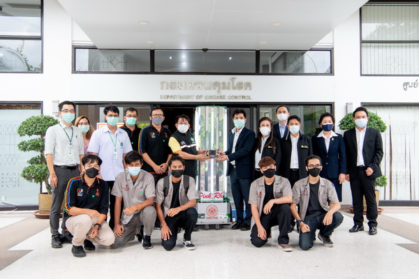EZ Webmaster June 14, 2021 EZ Webmaster June 14, 2021 มจพ .มอบหุ่นยนต์ประดู่แดงฉายแสง UVC แก่สถาบันบำราศนราดูร สู้ภัยโควิค ศ.ดร.สุชาติ เซี่ยงฉิน อธิการบดี พร้อมด้วยคุณภรณี ลีนุตพงษ์ กรรมการสภามหาวิทยาลัยผู้ทรงคุณวุฒิ ผศ.สมชาย เวชกรรม รองอธิการบดีฝ่ายกิจการนักศึกษาและศิษย์เก่าสัมพันธ์ อาจารย์ ดร.สราวุฒิ สืบแย้ม ผู้ช่วยอธิการบดีการคลังและกิจการทั่วไป ผศ.ดร.ณัฐพงศ์ มกระธัช ผู้ช่วยอธิการบดีฝ่ายพัฒนาสิ่งแวดล้อมและกายภาพ และทีมผู้วิจัย รศ.ดร.ศุภชัย ตระกูลทรัพย์ทวี และผศ.ดร.สถาพร วังฉาย มหาวิทยาลัยเทคโนโลยีพระจอมเกล้าพระนครเหนือ (มจพ.) ร่วมมอบหุ่นยนต์ประดู่แดงฉายแสง UVC รับมอบโดย นพ.ปรีชา เปรมปรี รองอธิบดีกรมควบคุมโรค กระทรวงสาธารณสุข เพื่อนำไปใช้ที่สถาบันบำราศนราดูร ณ วันที่ 9 มิถุนายน 2564 นวัตกรรมหุ่นยนต์ประดู่แดงฉายแสง UVC มีวัตถุประสงค์เพื่อสนับสนุนการสร้างนวัตกรรมต่าง ๆ สำหรับป้องกัน ควบคุม หรือรักษาโรคติดเชื้อไวรัสโคโรนา 2019 (COVID-19) หรือโควิด 19 (Coronavirus Disease 2019 (COVID-19)) และโรคติดเชื้ออื่น ๆ ให้กับสถานพยาบาล และหน่วยงานต่าง ๆ เป็นการออกแบบสร้างหุ่นฉายรังสี UVC ระบบควบคุมไร้สายด้วยคลื่นวิทยุ เพื่อฆ่าเชื้อไวรัส และเพื่อเผยแพร่เทคโนโลยีและการนำเทคโนโลยีใช้ให้เกิดประโยชน์สู่สังคม ขนาดหุ่นยนต์ประดู่แดงฉายแสง UVC 68x78x180 ซม. และใช้หลอดรังสียูวีที่สามารถฆ่าเชื้อโรคได้ ได้แก่ หลอดไอปรอทแรงดันต่ำ เปล่งรังสี 254 nm/หลอดอะมัลกัม เปล่งรังสี 254 nm/ หลอด UV LED ที่แปล่งรังสีในช่วง 242-313 nm หรือ 260-265 nm ทั้งนี้ มหาวิทยาลัยขอเชิญชวนผู้ที่มีจิตศรัทธาร่วมบริจาคเงินเพื่อพัฒนาและสร้างนวัตกรรมช่วยเหลือการแพทย์ในสถานการณ์การแพร่ระบาดของ COVID-19 สามารถบริจาคได้ที่บัญชี “กองทุนพัฒนามหาวิทยาลัยและต้านภัยโควิด มจพ.” ธนาคารกรุงเทพ สาขา มจพ. เลขที่บัญชี 907-3-50043-2 ใบเสร็จรับเงินการบริจาคสามารถลดหย่อนภาษีได้ 2 เท่า สอบถามรายละเอียดได้ที่ โทร.02-555-2000 ต่อ 1604