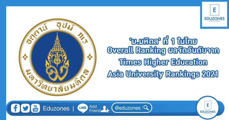 EZ Webmaster June 10, 2021 ‘ม.มหิดล’ ได้ที่ 1 ในไทย ภาพรวม Overall Ranking ผลจัดอันดับ Times Higher Education Asia University Rankings 2021 EZ Webmaster June 10, 2021 ม.มหิดล’ได้ที่ 1 ในไทย ภาพรวม Overall Ranking ผลจัดอันดับ Times Higher Education Asia University Rankings 2021 เมื่อเร็วๆ นี้ ได้มีการประกาศผลการจัดอันดับ Times Higher Education Asia University Rankings 2021 จากมหาวิทยาลัยชั้นนำทั่วเอเชีย โดยมหาวิทยาลัยมหิดลได้รับคะแนนรวมดีที่สุด เป็นอันดับ 1 ของประเทศไทย ในภาพรวม (Overall Ranking) Times Higher Education Asia University Rankings 2021 พิจารณาจากตัวชี้วัดคุณภาพ 5 ด้าน คือ… Continue Reading