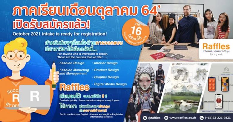 EZ Webmaster August 6, 2021 จบไวก่อนใคร! รับปริญญาตรีบริหารธุรกิจใน 3ปี กับ วิทยาลัยนานาชาติราฟเฟิลส์ EZ Webmaster August 6, 2021 วิทยาลัยนานาชาติราฟเฟิลส์ วิทยาลัยชั้นนำด้านแฟชั่นและการออกแบบที่ได้รับการยอมรับในระดับประเทศและได้รับความร่วมมือจาก มหาวิทยาลัยนอร์ทัมเบรีย ประเทศอังกฤษ มีความเชี่ยวชาญด้านการสร้างสรรค์ผู้ประกอบการด้านแฟชั่นการออกแบบและธุรกิจ หลักสูตรปริญญาตรี ระยะเวลา 3 ปี สำหรับสาขาการออกแบบ สาขาวิชาการออกแบบแฟชั่น (Fashion Design) สาขาวิชาแฟชั่นธุรกิจ (Fashion Marketing and Management) สาขาวิชาการออกแบบกราฟิก (Visual Communication Design/Graphic Design) สาขาวิชาการออกแบบมัลติมีเดีย (Digital Media Design/Multimedia Design) สาขาวิชาการออกแบบตกแต่งภายใน (Interior Design) สาขาวิชาการออกแบบผลิตภัณฑ์ (Product Design) เปิดรับสมัคร 4 เทอมการศึกษา (มกราคม/เมษายน/กรกฎาคม/ตุลาคม) ผู้เรียนสามารถสมัครเข้าเรียนได้ตามช่วงสะดวก เรียนกับเรามีแต่ #ได้กับได้️ ภาษา เพื่อนต่างชาติ connection ความรู้ ประสบการณ์จริง… Continue Reading