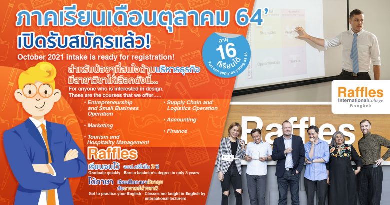 EZ Webmaster August 6, 2021 เข้าเรียนตุลาคมนี้!…จบม.4 รับปริญญาตรีบริหารธุรกิจใน 2.5ปี กับ วิทยาลัยนานาชาติราฟเฟิลส์ เนื้อหา EZ Webmaster August 6, 2021 วิทยาลัยนานาชาติราฟเฟิลส์ วิทยาลัยชั้นนำด้านแฟชั่นและการออกแบบที่ได้รับการยอมรับในระดับประเทศและได้รับความร่วมมือจาก มหาวิทยาลัยนอร์ทัมเบรีย ประเทศอังกฤษ มีความเชี่ยวชาญด้านการสร้างสรรค์ผู้ประกอบการด้านแฟชั่นการออกแบบและธุรกิจ หลักสูตรปริญญาตรี ระยะเวลา 2.5 ปี สำหรับสาขาบริหารธุรกิจ สาขาผู้ประกอบการและการบริหารจัดการธุรกิจขนาดย่อม (Entrepreneurship and Small Business Operation) สาขาการตลาด (Marketing) สาขาการจัดการด้านการท่องเที่ยวและการโรงแรม (Tourism and Hospitality Management) สาขาการบริหารจัดการซัพพลายเชนและโลจิสติกส์ (Supply Chain and Logistics Operation) สาขาการบัญชี (Accounting) สาขาการเงิน (Finance) เปิดรับสมัคร 4 เทอมการศึกษา (มกราคม/เมษายน/กรกฎาคม/ตุลาคม) ผู้เรียนสามารถสมัครเข้าเรียนได้ตามช่วงสะดวก เรียนกับเรามีแต่ #ได้กับได้️ ภาษา เพื่อนต่างชาติ connection ความรู้ ประสบการณ์จริง เกณฑ์การรับสมัคร … Continue Reading