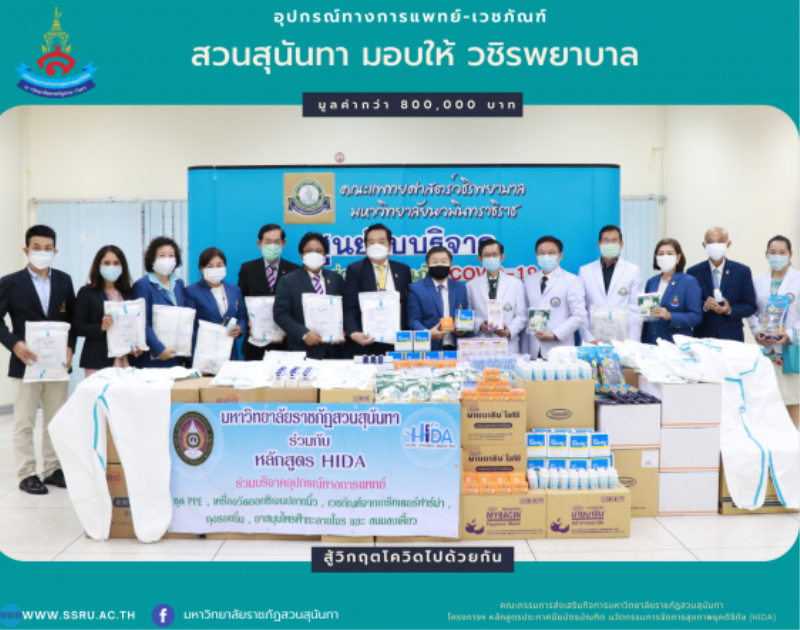 tui sakrapee August 27, 2021 สวนสุนันทา มอบอุปกรณ์ทางการแพทย์-เวชภัณฑ์เพื่อผู้ป่วยโควิด-19 แก่วชิรพยาบาล มูลค่ากว่า 800,000 บาท tui sakrapee August 27, 2021 สวนสุนันทา มอบอุปกรณ์ทางการแพทย์-เวชภัณฑ์เพื่อผู้ป่วยโควิด-19 วชิรพยาบาล มูลค่ากว่า 800,000 บาท วันที่ 27 สิงหาคม 2564 ผู้ช่วยศาสตราจารย์ ดร.ปรีชา พงษ์เพ็ง รองอธิการบดีฝ่ายบริหาร มหาวิทยาลัยราชภัฏสวนสุนันทา พร้อมด้วย ดร.สมชาย อัศวเศรณี ประธานคณะกรรมการส่งเสริมกิจการมหาวิทยาลัยราชภัฏสวนสุนันทา และประธานโครงการฯ หลักสูตรประกาศนียบัตรบัณฑิต นวัตกรรมการจัดการสุขภาพยุคดิจิทัล (HIDA) มหาวิทยาลัยราชภัฏสวนสุนันทา และคณะผู้บริหาร เข้ามอบอุปกรณ์ทางการแพทย์และเวชภัณฑ์ที่จำเป็นสำหรับผู้ป่วยติดเชื้อไวรัสโควิด-19 มูลค่า 800,000 บาท ให้แก่โรงพยาบาลวชิรพยาบาล โดยมี ผศ.นพ.จักราวุธ… Continue Reading