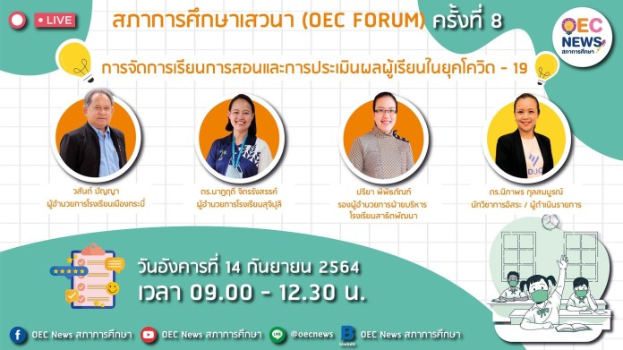 EZ Webmaster September 12, 2021 EZ Webmaster September 12, 2021 มาแล้ว! เสวนาการศึกษา OEC FORUM 2021 ครั้งที่ 8 การจัดการเรียนการสอนและการประเมินผลผู้เรียนในยุคโควิด – 19 ขอเชิญคุณครูและผู้ที่สนใจเข้าร่วมเสวนาการศึกษา OEC FORUM 2021 ครั้งที่ 8 การจัดการเรียนการสอนและการประเมินผลผู้เรียนในยุคโควิด – 19 พร้อมรับเกียรติบัตรฟรี ไม่มีค่าใช้จ่าย ในวันที่ 14 กันยายน 2564 กำหนดการ -วันอังคาร ที่ 14 กันยายน 2564 เวลา 09.00-12.30 น. ช่องทางการเข้าร่วม -สามารถชมผ่าน Live ทาง Facebook และ Youtube ของ OEC News สภาการศึกษา วิธีการรับเกียรติบัตร -ไม่มีการลงทะเบียนล่วงหน้า -จะมี QR Code แบบทดสอบสำหรับรับเกียรติบัตร เผยแพร่ระหว่างการถ่ายทอดสด (Live) โดยจะขึ้นภาพ QR Code ดังกล่าว ตั้งแต่เวลา 11.30 -ผู้รับชมการถ่ายทอดสด สามารถสแกน QR Code และเข้าทำแบบทดสอบสำหรับรับเกียรติบัตร (กรุณาเผื่อเวลาสำหรับการทำแบบทดสอบ เนื่องจากระบบจะปิดโดยอัตโนมัติในเวลา 12.30 น.) -โปรดตรวจสอบ Email คำนำหน้า ชื่อ-สกุล ทุกตัวอักษร เนื่องจากข้อความที่ท่านพิมพ์ใน Google Form จะเติมลงในเกียรติบัตรออนไลน์ เป็นระบบอัตโนมัติไม่สามารถแก้ไขได้ -โดยสำนักงานเลขาธิการสภาการศึกษา ขอสงวนสิทธิ์เกียรติบัตร สำหรับผู้ที่ทำแบบทดสอบผ่านเกณฑ์ และกรอกรายละเอียดครบถ้วนสมบูรณ์เท่านั้น โดยส่งเกียรติบัตรไปถึงอีเมลของท่าน ภายในวันที่ 30 กันยายน 2564 สำหรับผู้ที่สนใจสามารถสอบถามรายละเอียดเพิ่มเติม ได้ที่ >>> 0-2668-7123 ต่อ สำนักประเมินผลการจัดการศึกษา สำนักงานเลขาธิการสภาการศึกษา OEC News สภาการศึกษา Website: http://www.onec.go.th YouTube: https://bit.ly/2zXPkxO LINE: @OECNews | http://line.me/ti/p/@OECNews Blockdit: https://www.blockdit.com/oecnews