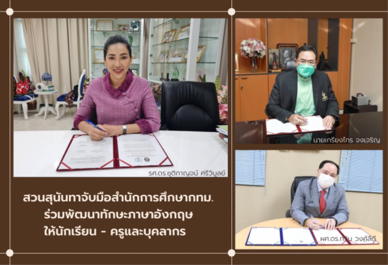 tui sakrapee September 26, 2021 สวนสุนันทาจับมือสำนักการศึกษากทม. พัฒนาทักษะภาษาอังกฤษ ให้นักเรียน- ครูและบุคลากร tui sakrapee September 26, 2021 รศ.ดร.ชุติกาญจน์ ศรีวิบูลย์ อธิการบดีมหาวิทยาลัยราชภัฏสวนสุนันทา ลงนามบันทึกข้อตกลงความร่วมมือทางวิชาการกับ นายเกรียงไกร จงเจริญ ผู้อำนวยการสำนักการศึกษา กรุงเทพมหานคร ในการพัฒนาศักยภาพทางด้านภาษาอังกฤษให้กับข้าราชการครูและบุคลากรทางการศึกษากรุงเทพมหานคร และนักเรียนในโรงเรียนสังกัดกรุงเทพมหานครเพื่อขยายความร่วมมือในการพัฒนาศักยภาพทางด้านภาษาอังกฤษต่อไป โดยมี ผศ.ดร.กวิน วงศ์ลีดี ผู้อำนวยการสถาบันสร้างสรรค์และส่งเสริมการเรียนรู้ตลอดชีวิต ร่วมลงนามเป็นสักขีพยานในครั้งนี้ด้วย อรวรรณ สุขมา : รายงาน ฝ่ายประชาสัมพันธ์และโสตทัศนูปกรณ์ มหาวิทยาลัยราชภัฏสวนสุนันทา www.ssru.ac.th Continue Reading