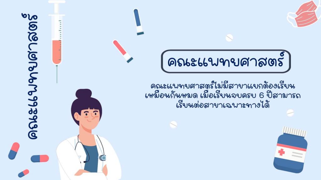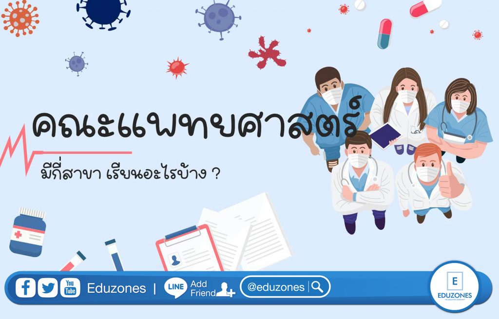 EZ Webmaster October 12, 2021 EZ Webmaster October 12, 2021 อยากเรียนคณะแพทยศาสตร์ มีกี่สาขา เรียนอะไรบ้าง ? น้อง ๆที่สนใจอยากเข้าคณะแพทยศาสตร์ วันนี้เราจะมาบอกว่าคณะแพทยศาสตร์เรียนอะไรบ้าง เพื่อให้น้อง ๆ ได้ศึกษาก่อนที่จะได้สมัครเข้าเรียนจริง ๆ มาดูกันเลย คณะแพทยศาสตร์ เรียนอะไรบ้าง คณะแพทยศาสตร์ใช้เวลาเรียนทั้งหมด 6 ปี ปี 1 เรียนปรับพื้นฐาน ในปีนี้จะต้องได้เรียนปรับพื้นฐานก่อน วิชาที่เรียนก็จะคล้าย ๆ กับตอนมอปลาย เช่น ฟิสิกส์ทั่วไป (บางสถาบัน), เคมีทั่วไป, ชีววิทยา, แคลคูลัส, ภาษาอังกฤษสำหรับวิชาชีพแพทย์ เป็นหลัก แต่ว่าจะยากกว่าที่เคยเรียนค่อยข้างเยอะ ปี 2 เริ่มเข้าเนื้อหาแพทย์ จะเริ่มเข้าเนื้อหาการเรียนเกี่ยวกับหมอแบบจริงจัง ได้เรียนรู้โครงสร้างด้านร่างกายและระบบในร่างกาย เช่น ระบบประสาท ระบบเลือด และวิชาที่จะได้เรียน เช่น วิชาทางกายวิภาค สรีรวิทยา พันธุศาสตร์ ดังนั้นจะต้องปรับตัวจากปี 1 และในปีนี้จะได้พบกับอาจารย์ใหญ่และกล่าวคำปฏิญาณด้วย ปี 3 เรียนเกี่ยวกับร่างกายมนุษย์ จะได้เรียนว่าร่ายกายมนุษย์เกิดอาการป่วยได้อย่างไร เรียนรู้สิ่งต่างๆ ที่ทำให้ร่างกายไม่ปกติ เช่น หลักภูมิคุ้มกันวิทยา, ปรสิตวิทยา, พยาธิทั่วไป, เวชศาสตร์ชุมชนฯ จนไปถึงยาต่าง ๆ ในเภสัชวิทยา แต่เป็นยาแบบพื้นฐาน ดังนั้นเราจะเริ่มรู้จักโรคต่าง ๆ และรู้จักเชื้อโรคที่เป็นสาเหตุของโรคด้วย เรียนเกี่ยวกับยารักษาโรค ถึงแม้จะไม่เรียนลึกเท่าเภสัช แต่ก็จะได้เรียนลึกขนาดต้องรู้กลไกการออกฤทธิ์ โครงสร้างของยาบางตัวที่สำคัญ ปิดเทรมปี 3 ก่อนขึ้นปี 4 ต้องสอบใบประกอบโรคของแพทย์ขั้นที่ 1 (เรียกสั้น ๆ ว่า NL 1 ซึ่งจะมีสอบทั้งหมด 3 ขั้น) และเนื้อหาที่ออกสอบคือ เนื้อหาที่เรียนทั้งหมดในปี 2 และปี 3 ปี 4 ได้เริ่มดูแลคนไข้ ปีนี้ ไม่ได้เป็นเลคเชอร์ในห้องรวมแล้ว แต่จะเป็นการเรียนรู้บนหอผู้ป่วย (วอร์ด) โดยเรียนรู้จักผู้ป่วยโดยตรงเลย โดยจะถูกแบ่งเป็นกลุ่มย่อย ๆ เพื่อไปวนวอร์ดผู้ป่วยต่าง ๆ ตลอดปี แต่ละวอร์ดก็จะมีเนื้อความรู้ที่ต่างกัน เช่น วอร์ดสูติ-นรีเวช ก็จะเน้นไปที่โรคของผู้หญิง วอร์ดเด็กที่จะเน้นโรคของเด็ก ในตอนที่วนไปแต่ละวอร์ดก็จะได้รับคนไข้ คือต้องซักประวัติ ตรวจร่างกาย วินิจฉัยโรค และให้แนวทางการรักษาเบื้องต้นได้ โดยอาจารย์บนวอร์ดจะเป็นคนคอยควบคุมดูแล ให้ความรู้ ชี้จุดบกพร่อง กับเราอีกทีหนึ่ง และปีนี้เราจะได้ขึ้นเวรด้วย ปี 5 คล้ายปี 4 แต่เรียนหนักขึ้น รูปแบบการเรียนของปี 5 จะเหมือนของปี 4 คือต้องแบ่งกลุ่มย่อย ๆ และวนไปตามวอร์ดต่าง ๆ ตลอดทั้งปี จะมีความแตกต่างวอร์ดที่
