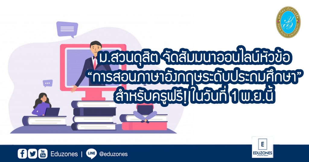 EZ Webmaster October 22, 2021 EZ Webmaster October 22, 2021 ม.สวนดุสิต จัดสัมมนาออนไลน์หัวข้อ “การสอนภาษาอังกฤษระดับประถมศึกษา” สำหรับครูฟรี! ในวันที่ 1 พ.ย.นี้ คณะครุศาสตร์ มหาวิทยาลัยสวนดุสิต เชิญคุณครูที่สนใจเข้าร่วมสัมมนาออนไลน์ หัวข้อ: การสอนภาษาอังกฤษระดับประถมศึกษา (ELT in Elementary Education) ในวันที่ 1 พฤศจิกายน 2564 ฟรี ไม่มีค่าใช้จ่าย กำหนดการ -ลงทะเบียนเข้าร่วมสัมมนา ภายในวันที่ 30 ตุลาคม 2564 -จัดสัมมนาในวันที่ 1 พฤศจิกายน 2564 เวลา 13.00-15.30 น. วิทยากรผู้บรรยาย -ผู้ช่วยศาสตราจารย์ ดร.วนิดา อัญชลีวิทยกุล ช่องทางการอบรม -อบรมออนไลน์ผ่าน โปรแกรม zoom สำหรับคุณครูที่สนใจเข้าร่วมสัมมนาสามารถเข้าไปแสกน qr code ได้ที่ด้านล่างนี้