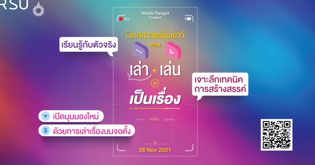 EZ Webmaster November 15, 2021 EZ Webmaster November 15, 2021 นิเทศฯ ม.รังสิต ชวนน้อง ม.ปลาย ร่วมโครงการนิเทศศาสตร์รุ่นเยาว์ ตอน “เล่า+เล่น = เป็นเรื่อง” วิทยาลัยนิเทศศาสตร์ มหาวิทยาลัยรังสิต เปิดรับสมัครน้องนักเรียนมัธยมศึกษาตอนปลาย เรียนรู้ทักษะการผลิตสื่อสร้างสรรค์ ภายใต้ร่วมโครงการนิเทศศาสตร์รุ่นเยาว์ ตอน “เล่า+เล่น = เป็นเรื่อง” กับตัวจริงในวงการผลิตคอนเทนต์บนโลกออนไลน์ คุณเตชทัต พุดตาล Content creator จากช่อง dome_zimorx และกูรูด้านการผลิตสื่อหลากหลายรูปแบบ ที่มาพร้อมกับโจทย์และภารกิจสุดท้าทาย โดยเปิดให้ร่วมกิจกรรมแบบออนไลน์ ในวันศุกร์ที่ 26 พฤศจิกายน 2564 สำหรับผู้ที่สนใจลงทะเบียนได้ที่ shorturl.at/bgBJT สอบถามเพิ่มเติมเพจวิทยาลัยนิเทศศาสตร์ มหาวิทยาลัยรังสิต https://www.facebook.com/NitadeRSU