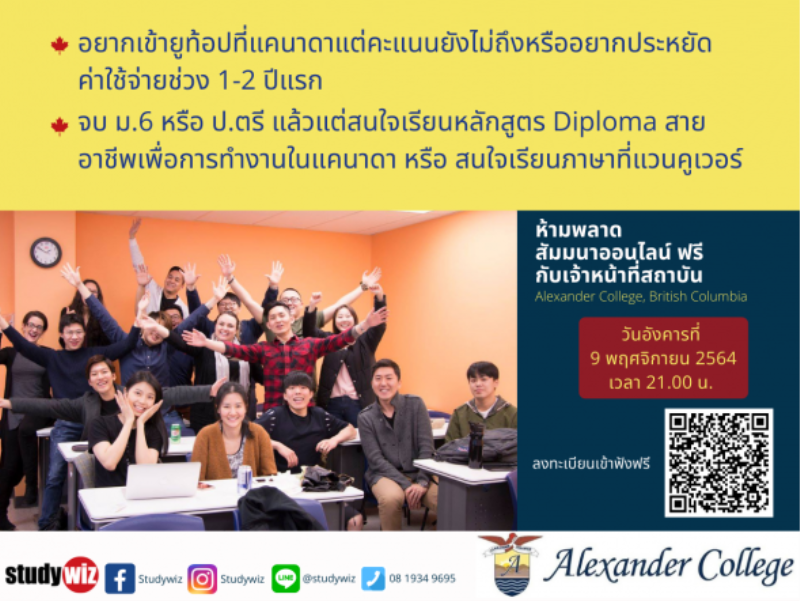 EZ Webmaster November 5, 2021 สัมมนาออนไลน์ฟรี สถาบัน Alexander College, British Columbia EZ Webmaster November 5, 2021 ห้ามพลาด สัมมนาออนไลน์ฟรี พบกับเจ้าหน้าที่สถาบัน Alexander College, British Columbia วันอังคารที่ 9 พฤศจิกายน เวลา 21.00 น. ลงทะเบียนได้ที่ https://forms.gle/rrYVPzVNcWBwZ57E8 Alexander College เป็นวิทยาลัยเอกชนที่ตั้งอยู่ในใจกลาง Vancouver และ Burnaby ใน British Columbia มีความสะดวกสบายสะอาดสะอ้าน ผู้คนเป็นมิตร อากาศไม่หนาวจัด อ่านต่อได้ที่ https://bit.ly/3pVbR68 สอบถามและขอข้อมูลเพิ่มเติมได้ที่ โทร. 08 6305… Continue Reading