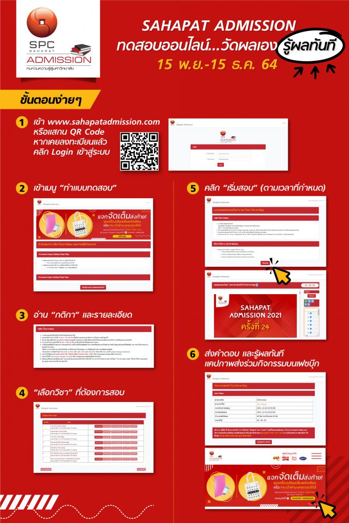 EZ Webmaster December 2, 2021 EZ Webmaster December 2, 2021 โค้งสุดท้ายแล้ว…..น้องๆ Dek65 อย่าพลาดการทดสอบความรู้ กับกิจกรรมช่วงที่ 2 ในมหกรรมติวฟรีออนไลน์ “สหพัฒน์แอดมิชชั่น” ครั้งที่ 24 เริ่ม 15 พ.ย.-15 ธ.ค.นี้ หลังจากที่ได้ติวสดออนไลน์กับ“สหพัฒน์แอดมิชชั่น” ครั้งที่ 24 ภายใต้การดำเนินการของบริษัท สหพัฒนพิบูล จำกัด (มหาชน) โดยผลิตภัณฑ์ มาม่า บิสชิน มองต์เฟลอ และริชเชส ซึ่งได้ผ่านช่วงเวลาการติวเข้มในช่วงที่ 1 ไปแล้ว และตอนนี้ถึงช่วงเวลาสำคัญสำหรับน้องๆ Dek65 ในการเข้าทดสอบความรู้ TCAS65 Online Post-Test กับกิจกรรมช่วงที่ 2 ด้วยสนามสอบจำลองเสมือนจริง จับเวลาสอบเสมือนจริง เมื่อสอบเสร็จและกดส่งข้อสอบแล้ว ระบบจะแจ้งคะแนนสอบทันที เตรียมอุปกรณ์ที่ใช้ในการสอบให้พร้อม โดยกำหนดการสอบ Online Post-Test แบ่งเป็น 2 ช่วง • คลิก www.sahapatadmission.com เข้าทดสอบออนไลน์ (15 พ.ย.-15 ธ.ค. 2564) จับเวลาสอบเสมือนจริง สอบเสร็จรู้คะแนนทันที • หลังสอบออนไลน์ (20 ธ.ค. 2564) สามารถดาวน์โหลด ใบรายงานผลการสอบ ข้อสอบ เอกสารเฉลย ประกาศนียบัตร (Online Certificate) สอบอย่างน้อย 3 วิชา จาก 7 วิชา และรับชมวิดีโอเฉลยข้อสอบ ซึ่งจะทำให้ทราบคะแนนต่ำสุด-สูงสุด และคะแนนเฉลี่ย ของแต่ละวิชา ผ่านทาง www.sahapatadmission.com ตั้งแต่ 20 ธันวาคม 2564 จนถึง 28 กุมภาพันธ์ 2565 Dek65 ที่พลาดการติวสดออนไลน์ สามารถลงทะเบียนเข้ามาติวฟรีย้อนหลังได้ทาง www.sahapatadmission.com เพื่อรับความรู้แนะแนวการทำข้อสอบ O-NET, GAT, PAT, วิชาสามัญ และวิชาแนะแนวอาชีพ รวมถึงเทคนิคการทำข้อสอบ TCAS65 พร้อมฟังประสบการณ์ดี ๆ เพื่อสร้างแรงบันดาลใจจากรุ่นพี่ไอดอล “น้องจ๊อบ-ภาวิช พิทักษ์กิจนุกูร” อันดับ 1 แพทย์จุฬาฯ และอันดับ 1 กสพท. อีกด้วย ส่วนมหกรรมติวฟรีครั้งต่อไป น้อง ๆ Dek66 ติดตามข่าวสารได้ทาง FB : Sahapat Admission https://www.facebook.com/SahapatAdmission หรือ โทร. 064-163-3449, 061-851-8646