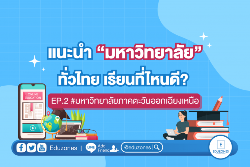 EZ Webmaster December 10, 2021 EZ Webmaster December 10, 2021 แนะนำ “มหาวิทยาลัย” ทั่วไทย เรียนที่ไหนดี EP.2 #มหาวิทยาลัยภาคตะวันออกเฉียงเหนือ ภาคตะวันออกเฉียงเหนือ “ภาคอีสาน” อยู่บนแอ่งโคราชและแอ่งสกลนคร มีแม่น้ำโขงกั้นเขตทางตอนเหนือและตะวันออกของภาค ทางด้านใต้จรดชายแดนกัมพูชา ทางตะวันตกมีเทือกเขาเพชรบูรณ์และเทือกเขาดงพญาเย็นเป็นแนวกั้นแยกจากภาคเหนือและภาคกลาง ภาษาหลักของภาคนี้ คือ ภาษาอีสานซึ่งเป็นภาษาลาวสำเนียงหนึ่ง ส่วนภาษาไทยกลางนิยมใช้กันแพร่หลายโดยเฉพาะในเมืองใหญ่ นอกจากนี้ภาคอีสานยังมีเอกลักษณ์ทางวัฒนธรรมที่โดดเด่น เช่น อาหาร ภาษา ดนตรี และยังมีมหาวิทยาลัยดี ๆ ที่เราอยากแนะนำ 1 มหาวิทยาลัยขอนแก่น มหาวิทยาลัยขอนแก่น สถาบันอุดมศึกษาแห่งแรกของภาคตะวันออกเฉียงเหนือ ก่อตั้งขึ้นตามนโยบายการขยายการศึกษาระดับอุดมศึกษาสู่ส่วนภูมิภาคตามแผนพัฒนาเศรษฐกิจฉบับที่ ๑ ของประเทศ โดยมีจุดมุ่งหมายเพื่อพัฒนากำลังคนและองค์ความรู้เพื่อการแก้ปัญหาให้กับภาคตะวันออกเฉียงเหนือซึ่งเป็นภูมิภาคที่มีพื้นที่ขนาดใหญ่ และมีประชากรเป็น ๑ ใน ๓ ของประเทศ ในแต่ละปีต้องเผชิญกับปัญหาภัยแห้งแล้งและผลผลิตทางภาคการเกษตรไม่ดีอย่างต่อเนื่อง อีกทั้งยังมีประชากรที่ยากจนอาศัยอยู่เป็นจำนวนมาก พระบาทสมเด็จพระมหาภูมิพลอดุลยเดชมหาราช บรมนาถบพิตร และสมเด็จพระนางเจ้าฯ พระบรมราชินีนาถ ได้เสด็จพระราชดำเนินมาทรงเปิดมหาวิทยาลัยขอนแก่นอย่างเป็นทางการเมื่อวันที่ ๒๐ ธันวาคม พุทธศักราช ๒๕๑๐ และได้พระราชทานพระราชดำรัสความตอนหนึ่งว่า “การตั้งมหาวิทยาลัยขอนแก่นเพิ่มขึ้นอีกแห่งหนึ่งนั้นเป็นคุณอย่างยิ่ง เพราะทำให้การศึกษาชั้นสูงขยายออกไปถึงภูมิภาคที่สำคัญที่สุดส่วนหนึ่งของประเทศ ซึ่งต่อไปจะเป็นผลดีแก่การพัฒนา ยกฐานะความเป็นอยู่ของประชาชนในภูมิภาคนี้เป็นอย่างยิ่ง ความสำเร็จในการตั้งมหาวิทยาลัยขอนแก่นจึงเป็นความสำเร็จที่ทุกคนควรจะยินดี” มหาวิทยาลัยขอนแก่น เป็นมหาวิทยาลัยแห่งสุขภาวะ ด้วยภาพลักษณ์ที่โดดเด่นทางด้านการวิจัยเวชศาสตร์เขตร้อนจากผลงานของศูนย์วิจัยพยาธิใบไม้ตับและมะเร็งท่อน้ำดี ความโดดเด่นด้านการพัฒนาพันธุ์พืชและสัตว์เขตร้อนในระดับโลก จากผลงานของศูนย์วิจัยปรับปรุงพันธุ์พืชเพื่อการเกษตรที่ยั่งยืน ศูนย์วิจัยและพัฒนาผลิตภัณฑ์สุขภาพจากสมุนไพร และศูนย์เครือข่ายวิจัยและพัฒนาด้านการปรับปรุงพันธุ์สัตว์ และยังเป็นศูนย์รวมองค์ความรู้ด้านอารยธรรมลุ่มน้ำ มุ่งเน้นความสุขของผู้มีส่วนเกี่ยวข้อง เช่น ประชาคม นักศึกษา ชุม