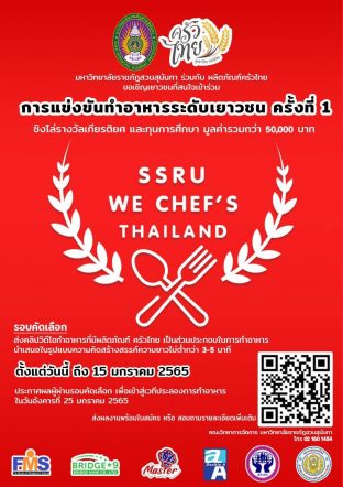 tui sakrapee December 2, 2021 สวนสุนันทาจับมือผลิตภัณฑ์ครัวไทย ชวนเยาวชนแข่งขันทำอาหารระดับชาติชิงทุนการศึกษา tui sakrapee December 2, 2021 สวนสุนันทาจับมือผลิตภัณฑ์ครัวไทย ชวนเยาวชนแข่งขันทำอาหารระดับชาติ มหาวิทยาลัยราชภัฎสวนสุนันทา ร่วมกับ ผลิตภัณฑ์ครัวไทย จัดการแข่งขันการทำอาหารระดับเยาวชนแห่งชาติ ครั้งที่ 1 (SSRU We Chef’s Thailand 1st) ชิงโล่รางวัลเกียรติยศ และทุนการศึกษามูลรวมกว่า 50,000 บาท โดยรับสมัครประเภททีม ซึ่งใช้จำนวนสมาชิก 3 คนต่อ 1 ทีม ผู้สมัครต้องกำลังศึกษาอยู่ในระดับมัธยมศึกษาตอนปลาย หรือ ระดับอุดมศึกษา หรือ เทียบเท่า (สมาชิกภายในทีมสามารถมาจากต่างสถาบันการศึกษาได้) ไม่จำกัดเพศหรือสถานะ กำหนดให้ส่งคลิปวิดีโอส่งเข้าประกวดมีความยาว 3-5… Continue Reading