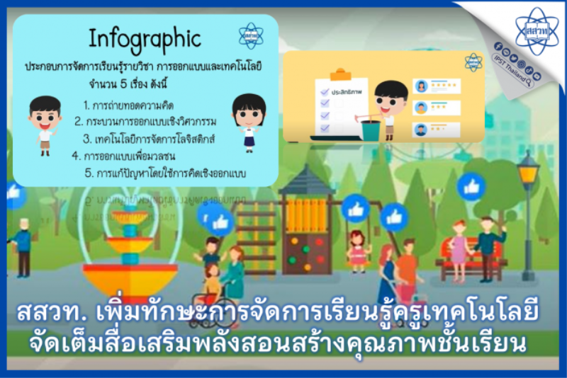 EZ Webmaster January 18, 2023 สสวท. เพิ่มทักษะการจัดการเรียนรู้ครูเทคโนโลยี จัดเต็มสื่อเสริมพลังสอนสร้างคุณภาพชั้นเรียน EZ Webmaster January 18, 2023 สถาบันส่งเสริมการสอนวิทยาศาสตร์และเทคโนโลยี (สสวท.) ชวนคุณครูพัฒนาทักษะการสอนด้วยสื่ออินโฟกราฟิกแบบภาพเคลื่อนไหว เข้าใจง่าย ใช้เป็นสื่อเสริมความเข้าใจเนื้อหาวิชาการออกแบบและเทคโนโลยี ที่เว็บไซต์ https://myipst.ipst.ac.th พบกับ 5 เรื่องเด่น “การถ่ายทอดความคิด” ชั้นมัธยมศึกษาปีที่ 1 – 5 เรื่อง “กระบวนการออกแบบเชิงวิศวกรรม” ใช้ประกอบการจัดการเรียนรู้ชั้นมัธยมศึกษาปีที่ 1-5 เรื่อง “เทคโนโลยีการจัดการโลจิสติกส์” ใช้ประกอบการจัดการเรียนรู้ชั้นมัธยมศึกษาปีที่ 3 เรื่อง “การออกแบบเพื่อมวลชน” ใช้ประกอบการจัดการเรียนรู้ ชั้นมัธยมศึกษาปีที่ 4 และเรื่อง “การแก้ปัญหาโดยใช้การคิดเชิงออกแบบ” ใช้ประกอบการจัดการเรียนรู้ชั้นมัธยมศึกษาปีที่ 5 นอกจากนี้ยังมีสื่อเสริมเติมเต็มความรู้อีกหลากหลาย คลิกชมข้อมูลที่เฟซบุ๊ก การออกแบบและเทคโนโลยี สสวท. https://www.facebook.com/dtthailand Continue Reading