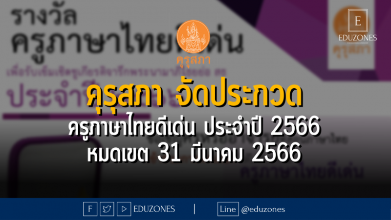 EZ Webmaster January 5, 2023 คุรุสภา จัดประกวด ครูภาษาไทยดีเด่น ประจำปี 2566 – หมดเขต 31 มีนาคม 2566 EZ Webmaster January 5, 2023 ผศ.ดร.อมลวรรณ วีระธรรมโม เลขาธิการคุรุสภา กล่าวว่า สำนักงานเลขาธิการคุรุสภากำหนดคัดเลือกครูภาษาไทยในประจำการของสถาบันการศึกษาระดับต่างๆ ทั้งของรัฐและเอกชน รวมทั้งผู้สอนภาษาไทยในระดับอุดมศึกษาที่มีผลงานดีเด่นเพื่อประกาศเกียรติคุณเป็นครูภาษาไทยดีเด่น ประจำปี 2566 จำนวนไม่เกิน 50 รางวัล จะได้รับรางวัลเข็มเชิดชูเกียรติจารึกพระนามาภิไธยย่อ สธ โล่ประกาศเกียรติคุณ และเกียรติบัตร มีวัตถุประสงค์เพื่อส่งเสริม และยกย่องเชิดชูเกียรติครูภาษาไทยที่มีผลงานดีเด่นให้เป็นแบบอย่างที่ดี สร้างขวัญและกำลังใจในการปฏิบัติงานให้ครูภาษาไทยพัฒนาตนเองและจัดการเรียนรู้ได้อย่างมีคุณภาพ ส่งเสริมและกระตุ้นให้สร้างนวัตกรรมการการจัดการเรียนรู้ที่เพิ่มคุณภาพของผู้เรียน และเพื่อเปิดโอกาสให้ผู้ได้รับรางวัลได้แลกเปลี่ยนเรียนรู้และถ่ายทอดประสบการณ์ทางวิชาชีพต่อไป . คุณสมบัติของผู้มีสิทธิได้รับรางวัลครูภาษาไทยดีเด่น เป็นครูหรืออาจารย์ประจำสอนภาษาไทยในสถานศึกษา ระดับการศึกษาขั้นพื้นฐาน ระดับอาชีวศึกษา หรือระดับอุดมศึกษา ทั้งของรัฐและเอกชน ปฏิบัติการสอนในวิชาภาษาไทยมาแล้วไม่น้อยกว่า 5 ปี นับถึงวันที่ออกประกาศ… Continue Reading