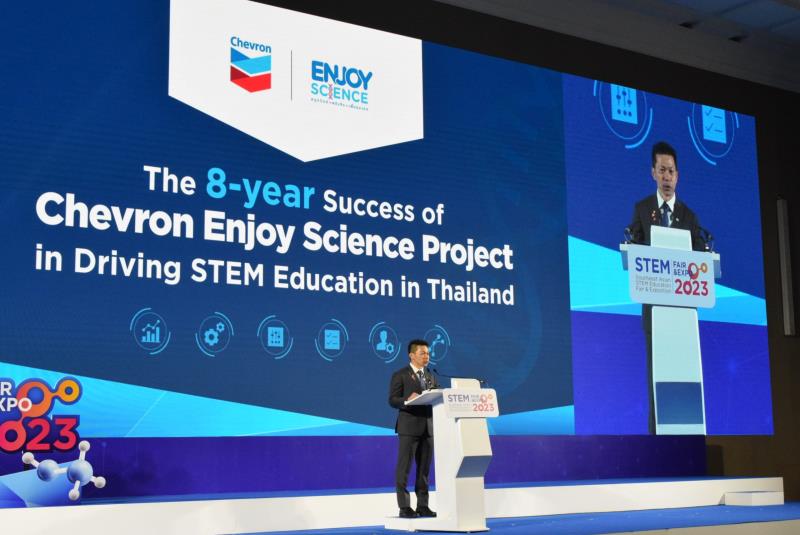 EZ Webmaster March 14, 2023 EZ Webmaster March 14, 2023 เชฟรอน – SEAMEO STEM-ED – กระทรวงศึกษาธิการ ผนึกกำลังในงาน Southeast Asian STEM Education Fair and Exposition 2023 มุ่งขยายผลโครงการ Chevron Enjoy Science ยกระดับสะเต็มศึกษาของชาติ เมื่อวันที่ 10 มีนาคม 2566 องค์การพิพิภัณฑ์วิทยาศาสตร์แห่งชาติ (อพวช.) ได้ร่วมงานกับ Southeast Asian STEM Education Fair and Exposition 2023 เวทีสรุปความสำเร็จของโครงการ “Chevron Enjoy Science: สนุกวิทย์ พลังคิด เพื่ออนาคต” จัดโดย บริษัท เชฟรอนประเทศไทยสำรวจและผลิต จำกัด จัดขึ้นที่โรงแรม Pullman Bangkok King Power ดำเนินการโดย SEAMEO STEM-ED ถือเป็นเวทีสรุปผลความสำเร็จตลอด 8 ปี ของโครงการฯ พร้อมเปิดแนวทางสานต่อสะเต็มศึกษาทั้งระดับประเทศและภูมิภาคให้ก้าวเดินต่อไป โดยฟันเฟืองที่จะช่วยขับเคลื่อนประเทศไทยในอนาคตคือเยาวชน จึงต้องสร้างกำลังคนให้มีความพร้อมตั้งแต่วัยเรียน “สะเต็มศึกษา” ถือเป็นองค์ความรู้สำคัญในการปฏิรูปการเรียนรู้ในศตวรรษที่ 21 สร้างรากฐาน เพิ่มขีดความสามารถการแข่งขันและนวัตกรรมของไทยสู่ระดับสากล รวมถึงช่วยขับเคลื่อนเศรษฐกิจ และยกระดับคุณภาพชีวิตในสังคมสู่ความยั่งยืนของชาติ หากพูดถึงโครงการพัฒนาการเรียนรู้ในสาขาวิทยาศาสตร์ เทคโนโลยี วิศวกรรม และคณิตศาสตร์ หรือ สะเต็ม อย่างเต็มรูปแบบและเห็นผลสำเร็จอย่างเป็นรูปธรรมในประเทศไทย โครงการ “Chevron Enjoy Science: สนุกวิทย์ พลังคิด เพื่ออนาคต” ริเริ่มโดย บริษัท เชฟรอนประเทศไทยสำรวจและผลิต จำกัด ถือเป็นต้นแบบของโครงการ ‘รัฐร่วมเอกชน’ ที่มุ่งยกระดับขีดความสามารถของประเทศผ่านสะเต็มศึกษา ภายใต้งบประมาณทั้งสิ้นกว่า 1,120 ล้านบาท พร้อมเป้าหมายในการสร้างรากฐานสำคัญเพื่อพัฒนานวัตกรรมและศักยภาพการแข่งขันของประเทศอย่างยั่งยืน ซึ่งในปีนี้ถือเป็นก้าวสำคัญที่เชฟรอนและพันธมิตรได้พาโครงการสำเร็จลุล่วงมาตลอด 8 ปี โดยภายในงาน Southeast Asian STEM Education Fair and Exposition 2023 ที่ SEAMEO STEM-ED ได้จัดขึ้นด้วยการสนับสนุนหลักจากเชฟรอน ถือเป็นเวทีสรุปผลความสำเร็จสำคัญของโครงการพร้อมเปิดแนวทางสานต่อสะเต็มศึกษาทั้งระดับประเทศและภูมิภาคให้ก้าวเดินต่อไป โดยภายในงาน มีผู้เข้าร่วมกว่า 500 คน ทั้งหน่วยงานภาครัฐ ผู้กำหนดนโยบาย ผู้พัฒนาหลักสูตรการศึกษา พันธมิตรหลากหลายภาคส่วน และเยาวชนจากทั้งในประเทศและภูมิภาคเอเชียตะวันออกเฉียงใต้ นายชาทิตย์ ห้วยหงษ์ทอง ประธานกรรมการบริหาร บริษัท เชฟรอนประเทศไทยสำรวจและผลิต จำกัด ได้ตอกย้ำถึงความมุ่งมั่นในการสร้างความยั่งยืนทางเศรษฐกิจและสังคมของประเทศผ่านการศึกษาว่า “ตั้งแต่ริเริ่ม โครงการ ‘Chevron Enjoy Science: สนุกวิทย์ พลังคิด เพื่ออนาคต’ เมื่อปี 2558 เรามองถึงความยั่งยืนของโครงการ จึงทำอย่างต่อ