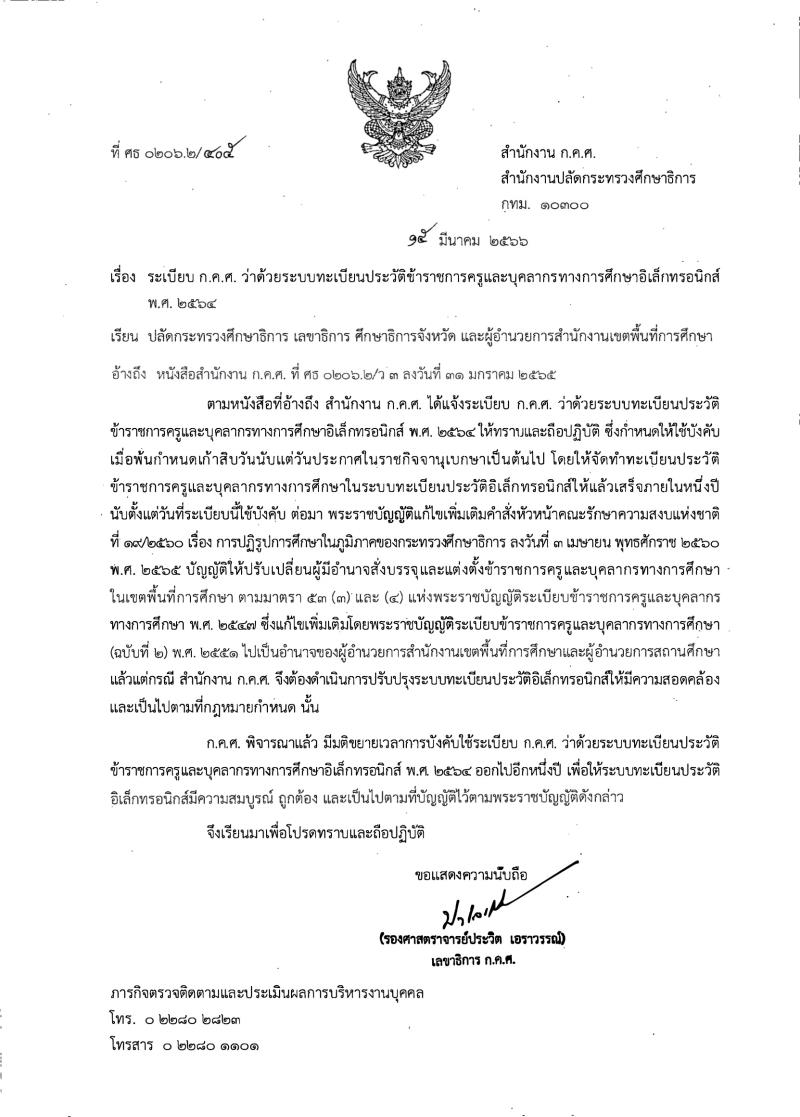 EZ Webmaster March 20, 2023 EZ Webmaster March 20, 2023 ระเบียบ ก.ค.ศ. ว่าด้วยระบบทะเบียนประวัติข้าราชการครูและบุคลากรทางการศึกษาอิเล็กทรอนิกส์ พ.ศ. 2564 ระเบียบ ก.ค.ศ. ว่าด้วยระบบทะเบียนประวัติข้าราชการครูและบุคลากรทางการศึกษาอิเล็กทรอนิกส์ พ.ศ. 2564 ระเบียบ ก.ค.ศ. ว่าด้วยระบบทะเบียนประวัติข้าราชการครูและบุคลากรทางการศึกษาอิเล็กทรอนิกส์ พ.ศ. 2564 . . อ่านเพิ่มเติม : 160366 แหล่งที่มา : คลิก