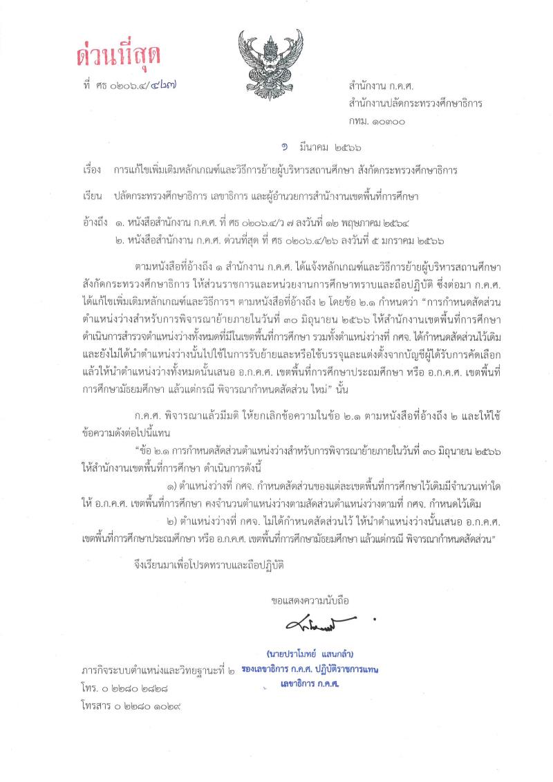 EZ Webmaster March 20, 2023 EZ Webmaster March 20, 2023 ล427/2566 การแก้ไขเพิ่มเติมหลักเกณฑ์และวิธีการย้ายผู้บริหารสถานศึกษา สังกัดกระทรวงศึกษาธิการ ล427/2566 การแก้ไขเพิ่มเติมหลักเกณฑ์และวิธีการย้ายผู้บริหารสถานศึกษา สังกัดกระทรวงศึกษาธิการ ล427/2566 การแก้ไขเพิ่มเติมหลักเกณฑ์และวิธีการย้ายผู้บริหารสถานศึกษา สังกัดกระทรวงศึกษาธิการ . . อ่านเพิ่มเติม : L427-2566 แหล่งที่มา : คลิก