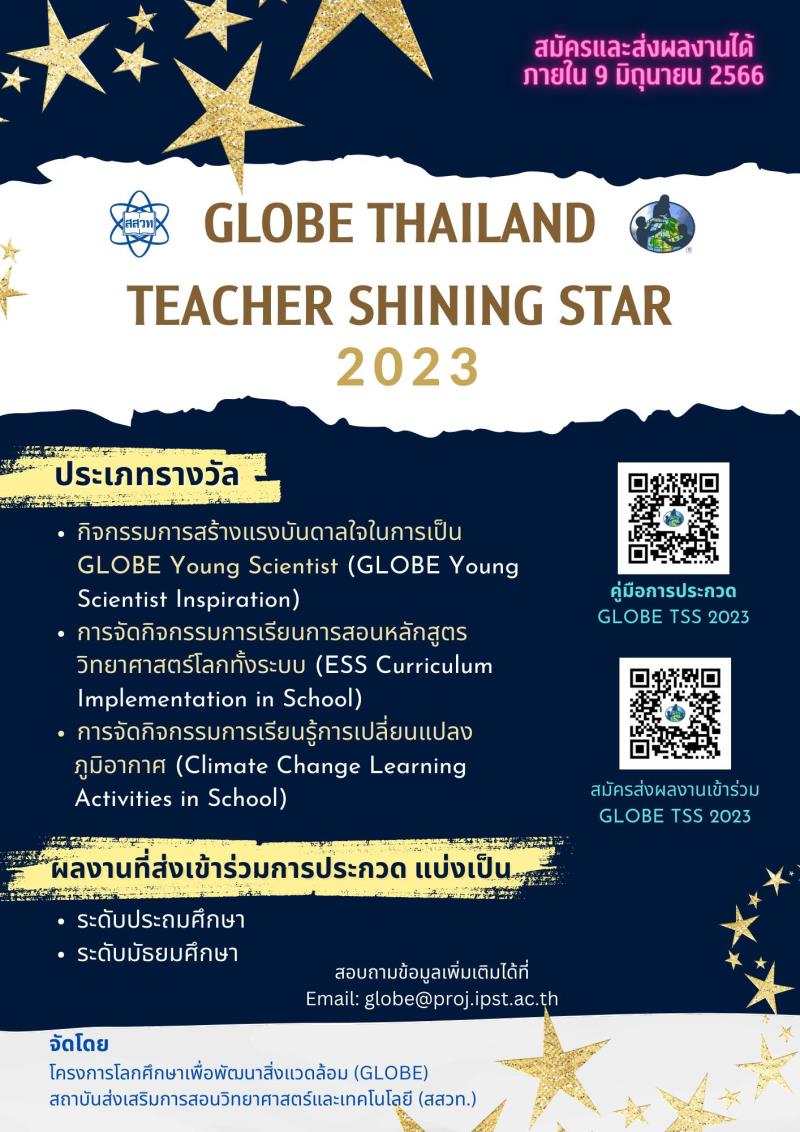 EZ Webmaster March 23, 2023 EZ Webmaster March 23, 2023 สสวท. ชวนครูวิทย์สิ่งแวดล้อมเตรียมพร้อมเปล่งประกาย ประกวด GLOBE Thailand Teacher Shining Star 2023 สถาบันส่งเสริมการสอนวิทยาศาสตร์และเทคโนโลยี (สสวท.) โดยโครงการโลกศึกษาเพื่อพัฒนาสิ่งแวดล้อม (GLOBE) ขอเชิญคุณครูส่งผลงานเข้าร่วมประกวด GLOBE Thailand Teacher Shining Star 2023 (GLOBE TSS) 3 ประเภทรางวัล คือ กิจกรรมการสร้างแรงบันดาลใจในการเป็น GLOBE Young Scientist (GLOBE Young Scientist Inspiration) การจัดกิจกรรมการเรียนการสอนหลักสูตรวิทยาศาสตร์โลกทั้งระบบ (ESS Curriculum Implementation in School) และ การจัดกิจกรรมการเรียนรู้การเปลี่ยนแปลงภูมิอากาศ (Climate Change Learning Activities in School) ผู้สมัครต้องเป็นครูผู้สอนระดับประถมศึกษาหรือมัธยมศึกษา ตามประเภทการสมัคร เป็นครูที่สอนวิทยาศาสตร์สิ่งแวดล้อมหรือวิทยาศาสตร์โลกทั้งระบบ หรือนำกิจกรรมการเรียนรู้ของ GLOBE หรือกิจกรรมการเรียนรู้การเปลี่ยนแปลงภูมิอากาศไปใช้จัดกิจกรรมการเรียนการสอนทั้งในและ/ หรือนอกห้องเรียนในระดับประถมศึกษาหรือมัธยมศึกษา สำหรับรางวัล Climate Change Learning Activities in School ผู้สมัครต้องเป็นครูที่ผ่านการอบรมหลักสูตรกิจกรรมการเรียนรู้การเปลี่ยนแปลงภูมิอากาศ ซึ่งจัดโดยโครงการ GLOBE สสวท. เลือกส่งผลงานได้ 1 ประเภท โดยต้องไม่เคยได้รับรางวัล GLOBE TSS ในประเภทที่สมัครเป็นเวลา 1 ปี ดูรายละเอียดที่เว็บไซต์โครงการ GLOBE THAILAND https://globethailand.ipst.ac.th/news.php สอบถามที่อีเมล globe@proj.ipst.ac.th หรือ https://web.facebook.com/GLOBEThailandOfficial ภายในวันที่ 9 มิถุนายน 2566
