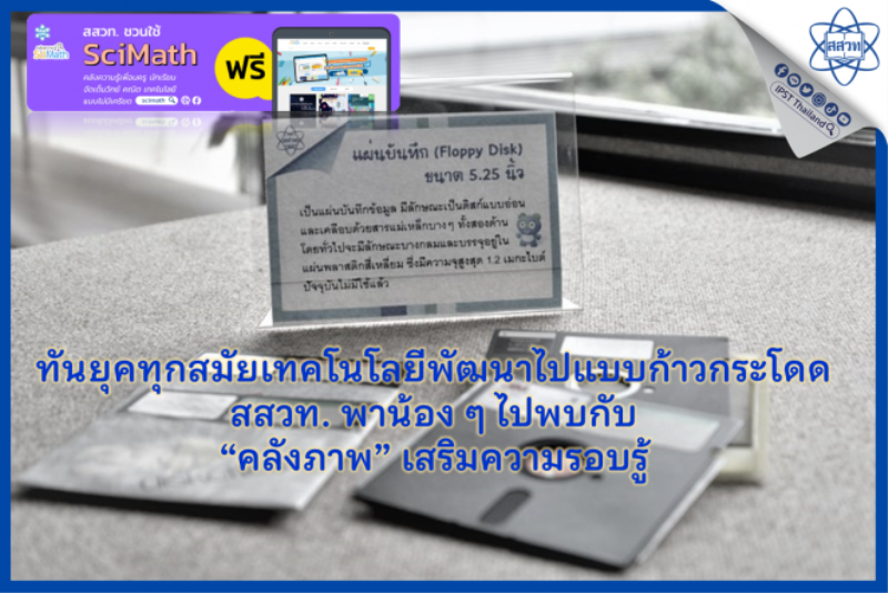 EZ Webmaster March 15, 2023 ทันยุคทุกสมัยเทคโนโลยีพัฒนาไปแบบก้าวกระโดด สสวท. พาน้อง ๆ ไปพบกับ “คลังภาพ” เสริมความรอบรู้ EZ Webmaster March 15, 2023 เทคโนโลยีก้าวกระโดดฉับไว อุปกรณ์หลายสิ่งยังมีใช้ หลายสิ่งแค่เคยมี สถาบันส่งเสริมการสอนวิทยาศาสตร์และเทคโนโลยี (สสวท.) พาน้อง ๆ เยาวชนไปทำความรู้จักกับอุปกรณ์เทคโนโลยีที่ใช้งานกับคอมพิวเตอร์ ซึ่งแม้จะเคยมีบทบาทสำคัญแต่ปัจจุบันน้อง ๆ อาจไม่คุ้นเคยแล้ว อาทิ ฟลอปปีดิสก์ ( Floppy Disk ) แผ่นบันทึกซึ่งเป็นอุปกรณ์เก็บข้อมูลที่มีความจุ 1.44 เมกะไบต์และ360 กิโลไบต์ ทำงานโดยอาศัยหลักการเหนี่ยวนำของสนามแม่เหล็ก แผ่นดีวีดีซึ่งเป็นแผ่นข้อมูลแบบบันทึกด้วยแสง (optical disc) ใช้บันทึกข้อมูลต่าง ๆ โดยถูกพัฒนาขึ้นใช้แทนซีดีรอมนั่นเอง เครื่องสำเนาแผ่นซีดี แป้นพิมพ์หรือ คีย์บอร์ด (keyboard) และอีกหลายรายการ พร้อมรูปภาพและเนื้อหาเสริมความเข้าใจ คลิกไปเติมความรอบรู้กันได้ที่คลังความรู้ SciMath คลังภาพเทคโนโลยี สสวท. https://www.scimath.org/image-technology Continue Reading