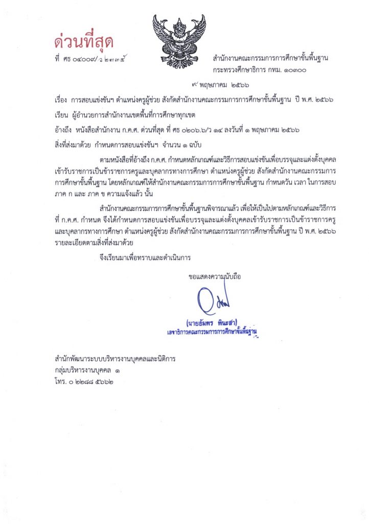 EZ Webmaster May 10, 2023 EZ Webmaster May 10, 2023 ศธ 04009/ว2335 – การสอบแข่งขันเพื่อบรรจุและแต่งตั้งบุคคลเข้ารับราชการเป็นข้าราชการครูและบุคลากรทางการศึกษา ตำแหน่งครูผู้ช่วย สังกัด สพฐ. ปี พ.ศ. 2566 ศธ 04009/ว2335 – การสอบแข่งขันเพื่อบรรจุและแต่งตั้งบุคคลเข้ารับราชการเป็นข้าราชการครูและบุคลากรทางการศึกษา ตำแหน่งครูผู้ช่วย สังกัด สพฐ. ปี พ.ศ. 2566 ศธ 04009/ว2335 – การสอบแข่งขันเพื่อบรรจุและแต่งตั้งบุคคลเข้ารับราชการเป็นข้าราชการครูและบุคลากรทางการศึกษา ตำแหน่งครูผู้ช่วย สังกัด สพฐ. ปี พ.ศ. 2566 . . อ่านเพิ่มเติม : แจ้ง-สศศ แจ้ง-สพท.ทุกเขต3 . แหล่งที่มา : คลิก