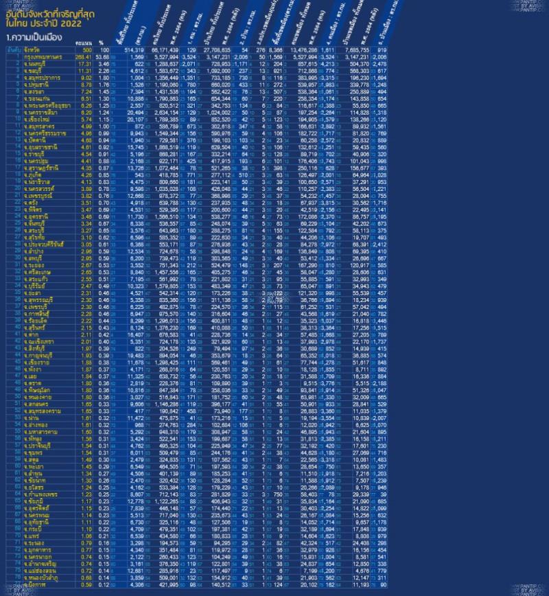 จังหวัดที่เจริญที่สุดในไทย 2565