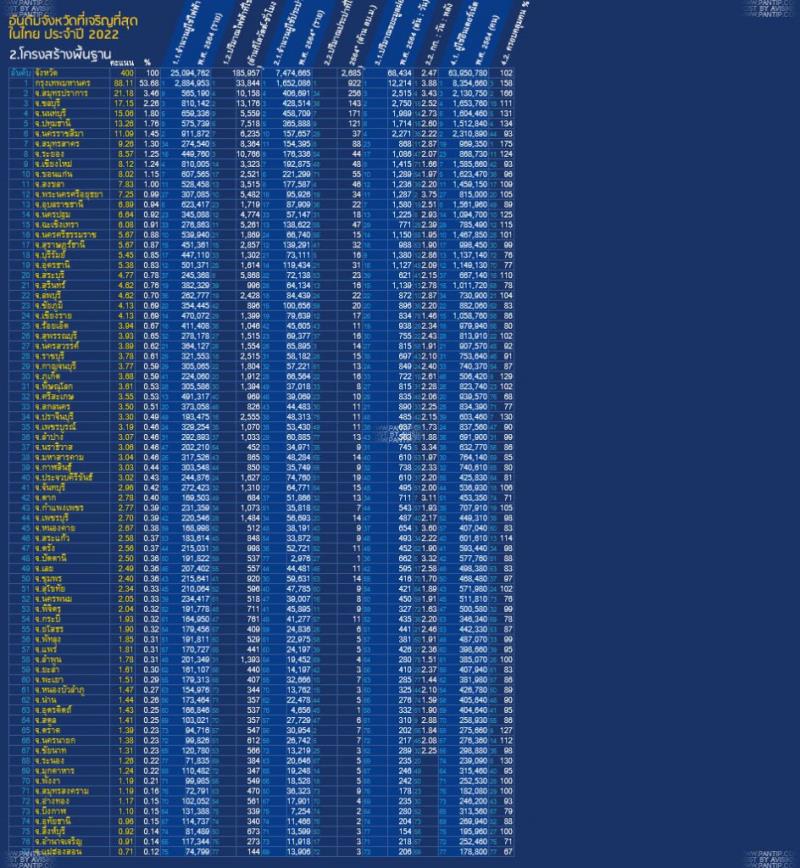 2.อันดับโครงสร้างพื้นฐานมากที่สุดในไทย 2565
