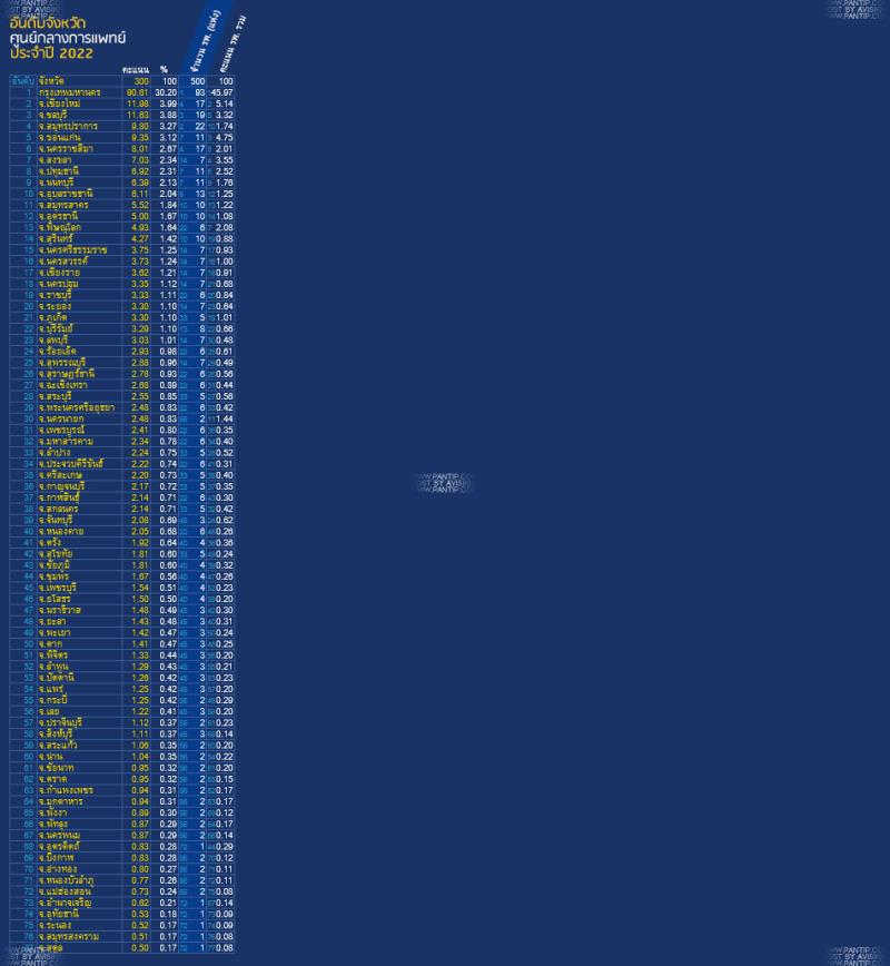 อันดับ 1 กรุงเทพมหานคร 91 คะแนน (22.82%)