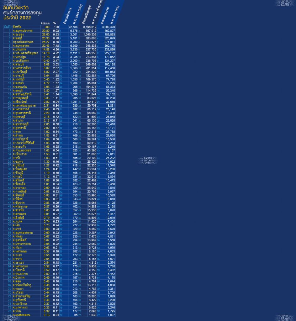 11.อันดับจังหวัดศูนย์กลางการลงทุนของไทย 2565