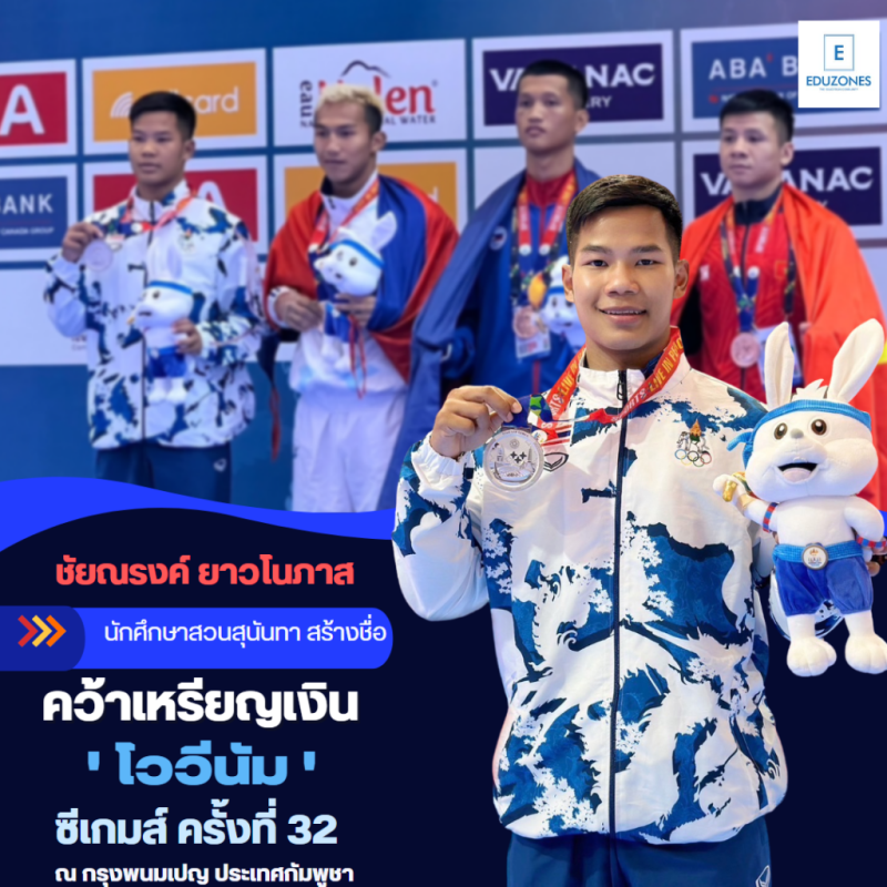 “ชัยณรงค์” นักศึกษามหาวิทยาลัยราชภัฏสวนสุนันทา เป็นตัวแทนทีมชาติไทย คว้าเหรียญเงินการแข่งขันกีฬา ‘โววีนัม’ ซีเกมส์ 2023 ที่ประเทศกัมพูชา