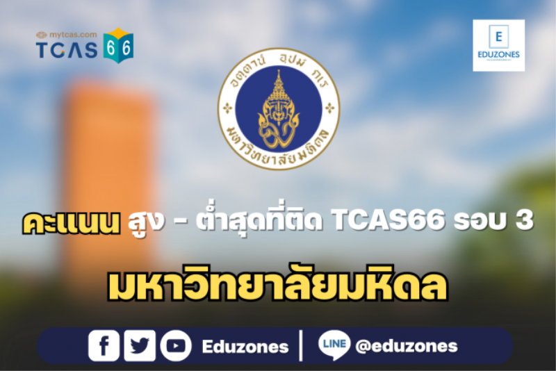EZ Webmaster May 26, 2023 คะแนนสูง – ต่ำสุดที่ติด TCAS66 รอบ 3 มหาวิทยาลัยมหิดล EZ Webmaster May 26, 2023 ผ่านไปแล้วกับการสอบ TCAS รอบที่ 3 ประจำปี 2566 วันนี้พี่ ๆ ชาว Eduzones จึงได้รวบรวมเกณฑ์คะแนน TCAS ของมหาวิทยาลัยมหิดล โดยแบ่งออกเป็น คณะ คะแนนต่ำสุด – สูงสุด จำนวนที่รับ จำนวนที่สมัคร และจำนวนที่ผ่านการสอบ จะเป็นยังไงกันบ้างไปดูกันเลย สำหรับใครที่อยากดูมหาวิทยาลัยใดเพิ่มเติมสามารถดูได้แล้วในลิ้งค์ที่แนบไว้ด้านล่างนี้เลย โดยการเช็คตามคะแนนของแต่ละมหาวิทยาลัย คณะที่สนใจ และ สาขาที่ตนอยากเรียน เพื่อใช้ในการเตรียมความพร้อมสำหรับรอบต่อไป พี่… Continue Reading