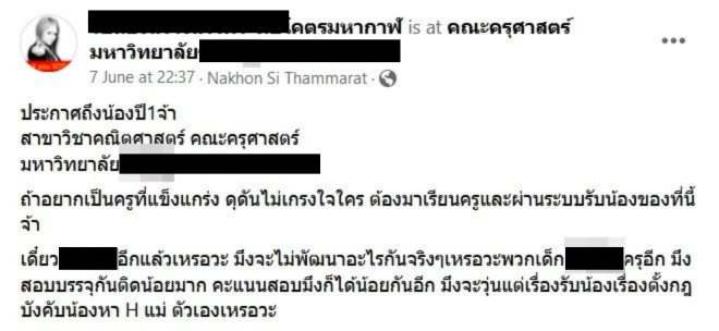 EZ Webmaster June 14, 2023 EZ Webmaster June 14, 2023 ดราม่า! รุ่นพี่ครุศาสตร์ม.ดัง เหยียด จุฬาฯ “มีแต่วิชาการไม่มีภูมิคุ้มกันทางสังคม” ดราม่า! รุ่นพี่ครุศาสตร์ม.ดัง เหยียด จุฬาฯ “มีแต่วิชาการไม่มีภูมิคุ้มกันทางสังคม” ดราม่า! รุ่นพี่ครุศาสตร์ม.ดัง เหยียด จุฬาฯ “มีแต่วิชาการไม่มีภูมิคุ้มกันทางสังคม” . เป็นที่วิพากษ์วิจารณ์ของคนในสังคม หลังแฟนเพจรุ่นพี่จากมหาวิทยาลัยแห่งหนึ่งจากนครศรีธรรมราชโพสต์ข้อความเรื่องกฎการรับน้องพร้อมเปรียบเทียบกับมหาวิทยาลัยอื่น . แหล่งที่มา : คลิก