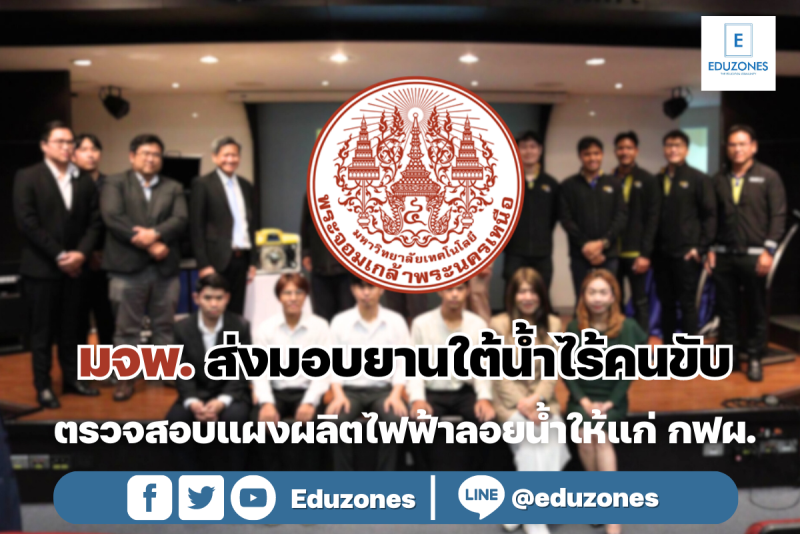 EZ Webmaster June 26, 2023 EZ Webmaster June 26, 2023 มจพ. ส่งมอบยานใต้น้ำไร้คนขับ ตรวจสอบแผงผลิตไฟฟ้าลอยน้ำให้แก่ กฝผ. ยานใต้น้ำไร้คนขับเพื่อตรวจสอบแผงผลิตไฟฟ้าลอยน้ำ เป็นทุนวิจัย และพัฒนานวัตกรรมที่การไฟฟ้าฝ่ายผลิตแห่งประเทศไทย (กฟผ.) ว่าจ้างมหาวิทยาลัยเทคโนโลยีพระจอมเกล้าพระนครเหนือ (มจพ.) ดำเนินงานโดยมี รองศาสตราจารย์ ดร.รามิล เกศวรกุล อาจารย์ประจำภาควิชาวิศวกรรมการผลิตและหุ่นยนต์ คณะวิศวกรรมศาสตร์ เป็นหัวหน้าโครงการ โดยมีงบประมาณ 9,987,951.18 บาท การออกแบบ และสร้างยานใต้น้ำที่สามารถตรวจสอบสภาพทุ่นลอยน้ำ และทุ่นใต้น้ำของแผงผลิตไฟฟ้าได้ อีกทั้งยังมีการประยุกต์ใช้เทคโนโลยีการประมวลผลภาพประเภทตัวกรองสัญญาณ เพื่อใช้ในการตรวจสอบ และประเมินความเสียหายเบื้องต้นได้ จากผลการวิจัยพบว่ารูปแบบการวางชุดขับดันแบบตัดขวางทแยงมุมกัน สามารถทำให้ยานเคลื่อนที่ได้อย่างอิสระ อีกทั้งยานใต้น้ำไร้คนขับสามารถสำรวจในน้ำที่มีความลึกไม่น้อยกว่า 25 เมตร ระยะทางในการสำรวจสูงสุดแบบมีสายสัญญาณที่ 250 เมตร และระยะทางในการสำรวจสูงสุดแบบไร้สายสัญญาณที่ 500 เมตร ยานใต้น้ำไร้คนขับ ติดตั้งระบบกำหนดตำแหน่งบนโลก และระบบตรวจจับระยะด้วยเสียงรอบทิศทางแบบเชิงกล สามารถทำการขับเคลื่อนระยะไกล และถ่ายทอดภาพขณะปฏิบัติงานใต้น้ำแบบใช้สายสัญญาณได้โดยมีระบบไฟส่องสว่างใต้น้ำ พร้อมทั้งทดสอบระบบการทำงานแบบไร้สายสัญญาณใต้ของยานใต้น้ำ โดยมีคณะทีมงานวิจัยประกอบด้วย ผู้ช่วยศาสตราจารย์ เจนจิรา สุขมณี มจพ. นาวาโทศราวุธ ศรีนาแก้ว สังกัดโรงเรียนนายเรือ ยานใต้น้ำไร้คนขับยานใต้น้ำไร้คนขับนำไปปฏิบัติงานที่โรงไฟฟ้าพลังงานแสงอาทิตย์แบบทุ่นลอยน้ำ ณ เขื่อนสิรินธร และตรวจสอบสภาพแวดล้อมภายในเขื่อนศรีนครินทร์ ซึ่งตอบโจทย์ในภาคอุตสาหกรรมด้านการสำรวจ และซ่อมบำรุงใต้น้ำ จนถึงใต้ทะเล เพื่อป้องกันอันตรายที่เกิดจากการปฏิบัติงานด้วยมนุษย์ โดยผลงานวิจัยชิ้นนี้สามารถลดการนำเข้ายานใต้น้ำจากต่างประเทศ และสามารถพัฒนาในเชิงพาณิชย์ต่อไปได้ สามารถสอบถามรายละเอียดเพิ่มเติมได้ที่ ผู้ช่วยศาสตราจารย์ เจนจิรา สุขมณี 089-767-0099