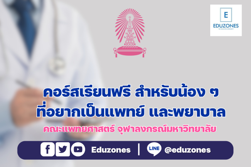 EZ Webmaster July 19, 2023 EZ Webmaster July 19, 2023 คอร์สเรียนฟรี สำหรับน้อง ๆ ที่อยากเป็นแพทย์ และพยาบาล คณะแพทยศาสตร์ จุฬาลงกรณ์มหาวิทยาลัย สวัสดีค่ะน้องๆ ชาว Eduzones วันนี้ Eduzones จะพามาดูข้อมูลคอร์สเรียนฟรีที่คณะแพทยศาสตร์ จุฬาลงกรณ์มหาวิทยาลัย ได้จัดขึ้นให้สำหรับน้อง ๆ ที่อยากจะเป็นหมอ พร้อมแล้วไปดูกันเลยค่าาา 1. การช่วยฟื้นคืนชีพ ขั้นพื้นฐาน (Basic Life Support) เกี่ยวกับรายวิชา การช่วยฟื้นคืนชีพขั้นพื้นฐานเป็นความรู้และทักษะพื้นฐานที่ประชาชนทั่วไปพึงมี และสามารถทำได้ ซึ่งการเจ็บป่วยฉุกเฉินหรืออุบัติเหตุฉุกเฉินสามารถเกิดขึ้นได้ทุกเวลา จุฬาลงกรณ์มหาวิทยาลัยเป็นสังคมใหญ่ที่ประกอบด้วยนิสิต คณาจารย์ และบุคลากรจำนวนมาก ดังนั้นหากนิสิต คณาจารย์ และบุคลากรทุกท่านมีความรู้และทักษะในการแจ้งเหตุฉุกเฉิน การช่วยฟื้นคืนชีพขั้นพื้นฐานและการปฐมพยาบาลเมื่อเกิดเหตุฉุกเฉินทางการแพทย์เบื้องต้นได้นั้น จะเป็นการเพิ่มโอกาสรอดชีวิตและลดภาวะทุพพลภาพแก่ผู้เจ็บป่วยฉุกเฉินได้ ดังนั้นหากผู้เรียนได้เรียนรู้เนื้อหาการแจ้งเหตุฉุกเฉิน การช่วยฟื้นคืนชีพขั้นพื้นฐาน การปฐมพยาบาลเหตุฉุกเฉินการแพทย์เบื้องต้น จะส่งผลให้ผู้เรียนมีความรู้และทักษะเพียงพอที่จะสามารถนำไปใช้ช่วยเหลือตนเอง ครอบครัว เพื่อนร่วมงานและผู้ประสบเหตุในสังคมได้ต่อไป หัวข้อวิชา การช่วยฟื้นคืนชีพขั้นพื้นฐาน (Basic Life Support) การแจ้งเหตุฉุกเฉินทางการแพทย์ (Medical emergency call for help) การช่วยฟื้นคืนชีพขั้นพื้นฐานในผู้ป่วยผู้ใหญ่ (Basic CPR and AED Adult for non-health care provider) การช่วยฟื้นคืนชีพขั้นพื้นฐานในผู้ป่วยเด็ก (Basic CPR and AED Pediatric for non-health care provider) การช่วยเหลือผู้ป่วยหัวใจขาดเลือดฉับพลันเบื้องต้น (Heart attack) การช่วยเหลือผู้ป่วยโรคหลอดเลือดสมองเบื้องต้น (Acute stroke) การช่วยเหลือผู้ป่วยที่มีสิ่งแปลกปลอมอุดกั้นทางเดินหายใจส่วนบน (Foreign body Upper Airway Obstruction) วัตถุประสงค์ เพื่อให้ผู้เรียนมีความรู้และสามารถแจ้งเหตุฉุกเฉินได้อย่างถูกต้อง เพื่อให้ผู้เรียนมีความรู้ความเข้าใจการช่วยฟื้นคืนชีพขั้นพื้นฐาน เพื่อให้ผู้เรียนมีทักษะสามารถปฏิบัติการช่วยฟื้นคืนชีพขั้นพื้นฐานได้อย่างถูกต้อง เพื่อให้ผู้เรียนมีความรู้ความเข้าใจการช่วยปฐมพยาบาลเบื้องต้นเหตุฉุกเฉินทางการแพทย์ได้ เพื่อให้ผู้เรียนมีทักษะสามารถปฏิบัติการช่วยปฐมพยาบาลเบื้องต้นเหตุฉุกเฉินทางการแพทย์ได้ เพื่อให้ผู้เรียนมีความตระหนักและจิตสาธารณะในการช่วยเหลือเบื้องต้นกรณีพบเหตุฉุกเฉินการแพทย์ เนื้อหา 6 บทเรียน กลุ่มเป้าหมาย บุคลากรโรงพยาบาลจุฬาลงกรณ์ จำนวน 5,000 คน เกณฑ์การเรียนจบ ผู้เรียนต้องท