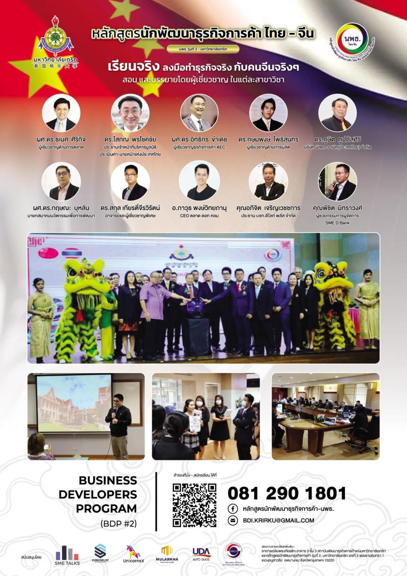 EZ Webmaster July 31, 2023 EZ Webmaster July 31, 2023 ม.เกริก เปิดรับสมัครหลักสูตร ‘นักพัฒนาธุรกิจการค้าไทย-จีน’รุ่นที่ 2 สร้างขีดความสามารถผู้ประกอบการไทย หลังจากสถานการณ์โควิด 19 ได้คลี่คลายลง ทำให้เศรษฐกิจทั่วโลกเริ่มฟื้นตัวได้อีกครั้ง และเปลี่ยนแปลงไปในทิศทางที่ดีขึ้น รวมถึงประเทศไทยที่ผู้ประกอบการหลายรายเริ่มเปิดกิจการ ไม่ว่าจะเป็นผู้ประกอบการ SMEs หรือวิสาหกิจชุมชน ล้วนแต่มองหาโอกาสทางธุรกิจในด้านการค้า และการลงทุน จึงมีความจำเป็นอย่างยิ่งที่จะต้องพัฒนาศักยภาพของผู้ประกอบการ เพื่อให้กิจการดำเนินการต่อไปได้ ประกอบกับการปรับตัวสู่ชีวิตวิถีใหม่ (New Normal) ที่ส่งผลให้ผู้บริโภคมีพฤติกรรมเปลี่ยนแปลงไป จึงทำให้การตัดสินใจเลือกซื้อ หรือรูปแบบการให้บริการต่าง ๆ ต้องปรับเปลี่ยนใหม่ทั้งสิ้น ดังนั้น สถาบันพัฒนาธุรกิจการค้าแห่งมหาวิทยาลัยเกริก ได้พัฒนาหลักสูตรที่เคยจัดการอบรม โดยใช้ชื่อ “หลักสูตรนักพัฒนาธุรกิจการค้า ไทย-จีน” (นพธ.) และได้มีการเปิดตัวพร้อมเปิดการเรียนการสอนในหลักสูตรนักพัฒนาธุรกิจการค้าไทย-จีน รุ่นที่ 1 (นพธ.1) ไปแล้วเมื่อเดือนกันยายน 2563 ซึ่งเป็นหลักสูตรของมหาวิทยาลัยเกริกที่ตอบโจทย์ผู้ที่สนใจทำการค้าร่วมกับจีน เพื่อปรับตัวรับกับโลกยุคใหม่ทางการค้าโดยมีศูนย์กลางการเรียนรู้อยู่ที่ผู้เรียนเป็นหลัก พร้อมกับการมุ่งเน้นฝึกฝนภาคปฏิบัติ เพื่อให้เกิดทักษะในด้านต่าง ๆ ตามมา ตลอดจนพร้อมเป็นนักพัฒนาธุรกิจการค้าที่ต้องการค้าขายกับจีน ซึ่งเป็นตลาดใหญ่ของโลกได้อย่างมีประสิทธิภาพและมีประสิทธิผล ก่อให้เกิดรายได้เข้าสู่ประเทศ เกิดการเติบโตของผู้ประกอบการและเป็นรายได้อย่างมั่นคงให้แก่ตนเองได้เป็นอย่างดี ในปี 2566 นี้ มหาวิทยาลัยเกริก จึงได้กลับมาเปิดรับผู้ประกอบการ นักธุรกิจ ผู้สนใจ เข้าเรียนในหลักสูตรนักพัฒนาธุรกิจการค้า ไทย-จีน รุ่นที่ 2 (นพธ.2) หลักสูตรเข้มข้นที่จะพัฒนาความรู้ ความสามารถ และทักษะให้กับนักธุรกิจการค้าไทย-จีน และเพื่อเพิ่มประสิทธิภาพ เพิ่มขีดความสามารถผู้ประกอบการ SMEs และวิสาหกิจรายย่อยให้เป็นมืออาชีพอย่างแท้จริง โดยหลักสูตรเหมาะกับผู้ประกอบการธุรกิจที่ต้องการทำธุรกิจการค้ากับจีน, นักธุรกิจ SMEs, Otop, พนักงานเอกชน ที่ต้องการโอกาสทางการค้ากับประเทศจีน, ข้าราชการทั่วไป, ผู้ให้คำปรึกษาแนะนำทางธุรกิจ, สื่อมวลชน, ประชาชนและผู้สนใจทั่วไป โดยหลักสูตรฯ เป็นการประสานความร่วมมือระหว่างหน่วยงานภาครัฐและเอกชน ที่มีประสบการณ์ในการจัดทำหลักสูตรฝึกอบรม ซึ่งมีผู้บรรยายที่เชี่ยวชาญแต่ละสาขามาอบรมโ