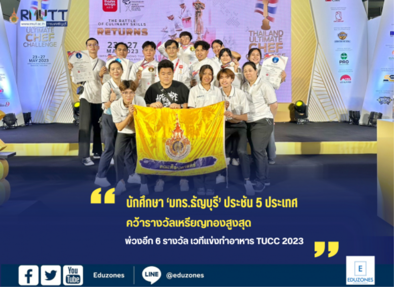 tui sakrapee July 7, 2023 นักศึกษา ‘มทร.ธัญบุรี’ ประชัน 5 ประเทศ คว้ารางวัลเหรียญทองสูงสุด พ่วงอีก 6 รางวัล เวทีแข่งทำอาหาร TUCC 2023 tui sakrapee July 7, 2023 นักศึกษา ‘มทร.ธัญบุรี’ ประชัน 5 ประเทศ คว้ารางวัลเหรียญทองสูงสุด พ่วงอีก 6 รางวัล ในเวทีการแข่งขันทำอาหาร TUCC 2023 นักศึกษาชั้นปีที่ 3 สาขาการจัดการการโรงแรม คณะศิลปศาสตร์ มหาวิทยาลัยเทคโนโลยีราชมงคลธัญบุรี (มทร.ธัญบุรี) สังกัดชมรมการโรงแรมและนวัตกรรมการบริการ Hospitality and Service Innovation Club (HSI) ได้รางวัลระดับนานาชาติ “รางวัลเหรียญทองคะแนนสูงสุด” จากผู้เข้าแข่งขันทั้งหมด 5 ประเทศ ในการแข่งขัน Thailand… Continue Reading